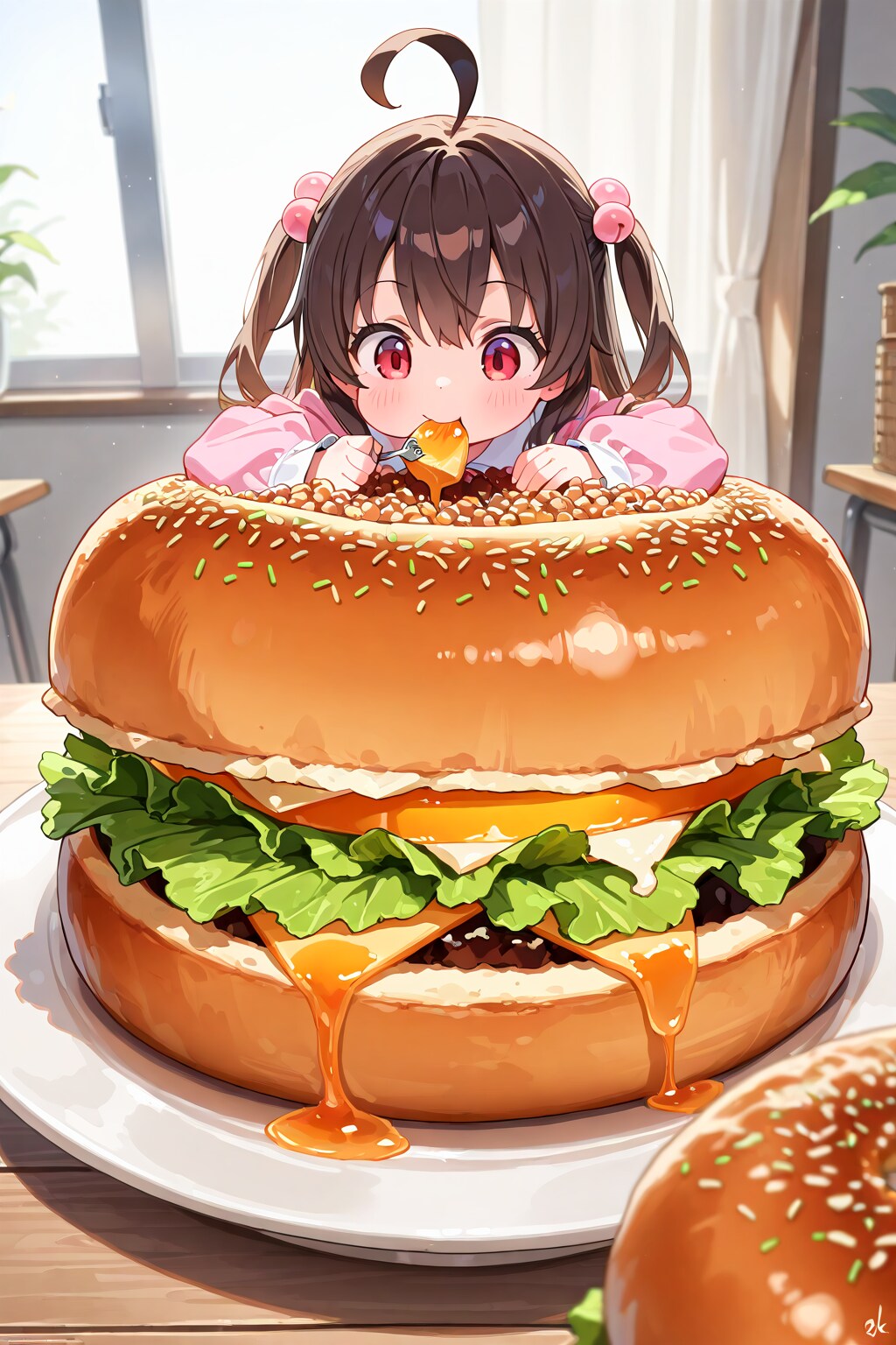 1枚目 oversized food 食べ物が巨大になる。他の食べ物プロンプトとの組み合わせで使う。
