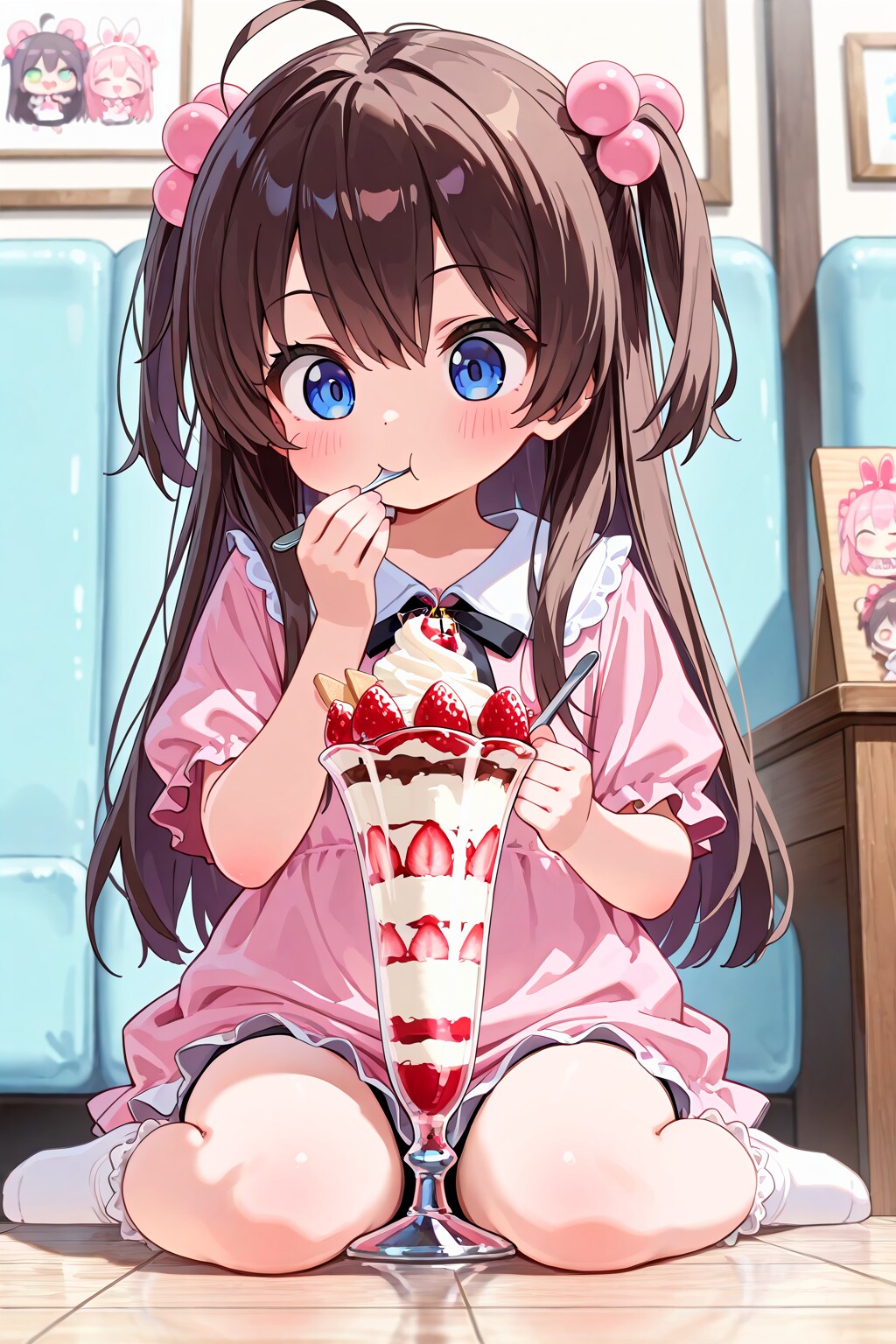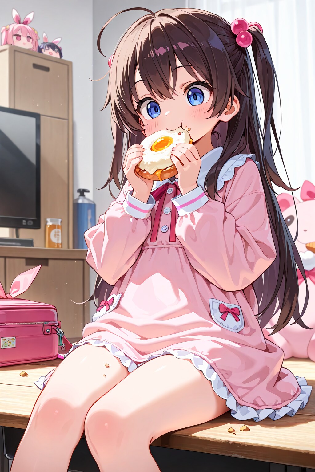 (masterpiece, best quality, ultra detailed, 8k, 4k, hires, absurdres:1.4),(loli,little,ultra cute kawaii:1.4),safe,1 girl,eating,
