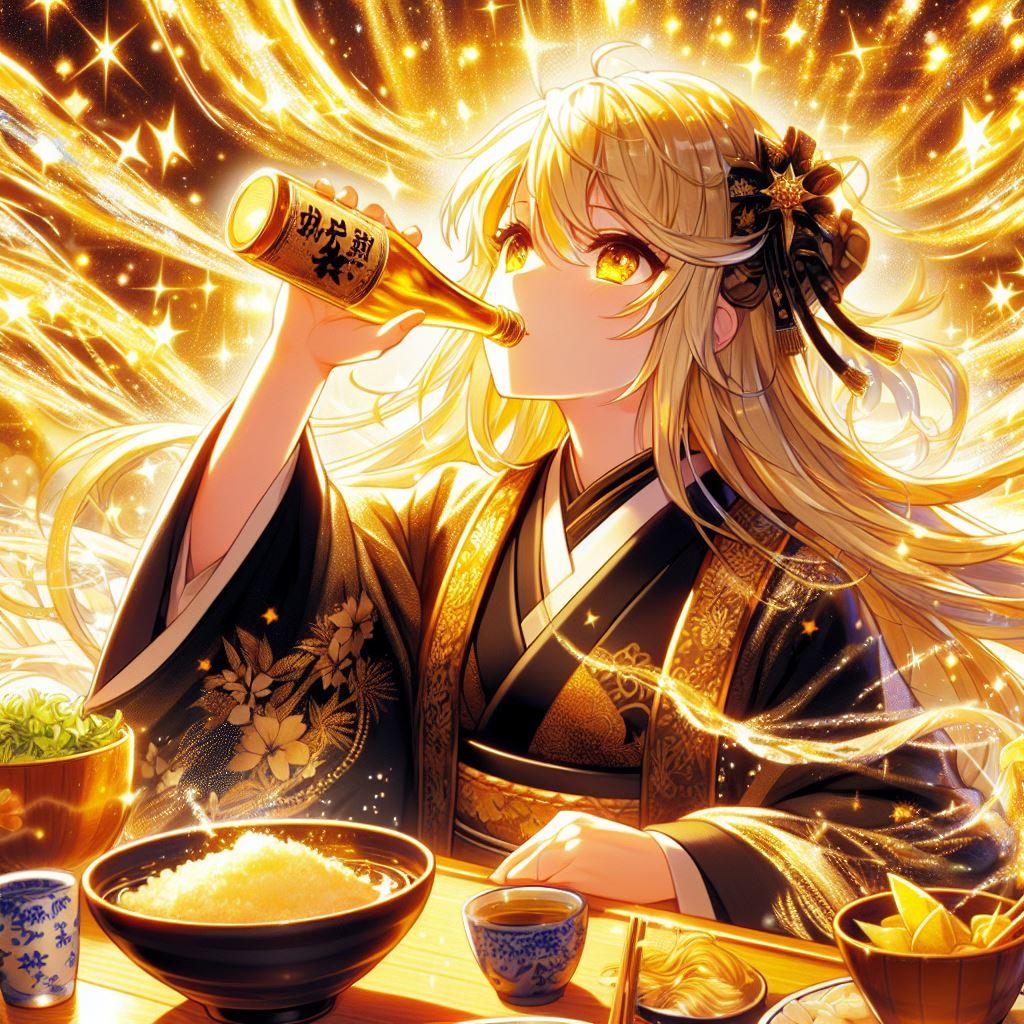 とうとう瓶から直飲みし始めた女騎士さん(着物姿)