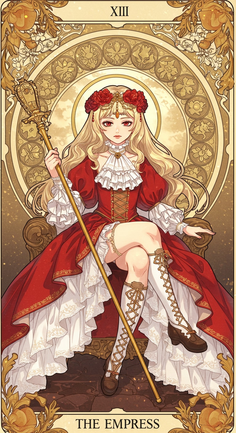 投稿作品に貴婦人が多かったので、自分の作品「葡萄と少女」を改変してタロットカード「女帝」をモチーフに作成しました。