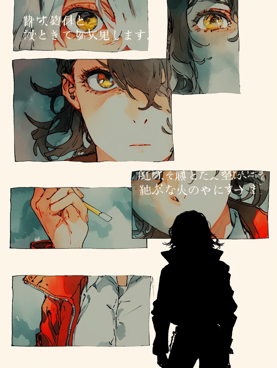 jacket partially removed, heart in eye, burnt clothes, holding fishing rod, kanji, doujin cover, pentagram, tape gag, adjusting headwear, red socks, friends, cloud print, coke-bottle glasses, oral invitation, competition school swimsuit, barbell piercing, gradient legwear, prisoner, blood on breasts, wind chime, carrying over shoulder, tape measure, flaming weapon