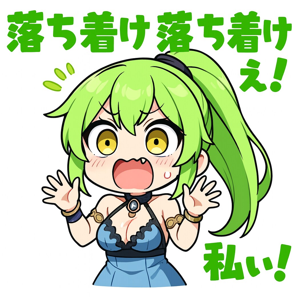 先述のご投稿のプロンプトを参考に生成いたしました。オリジナルに比べ髪の緑がちょっと違ってしまったので、ChatGPTでスタンプ化の際に修正。