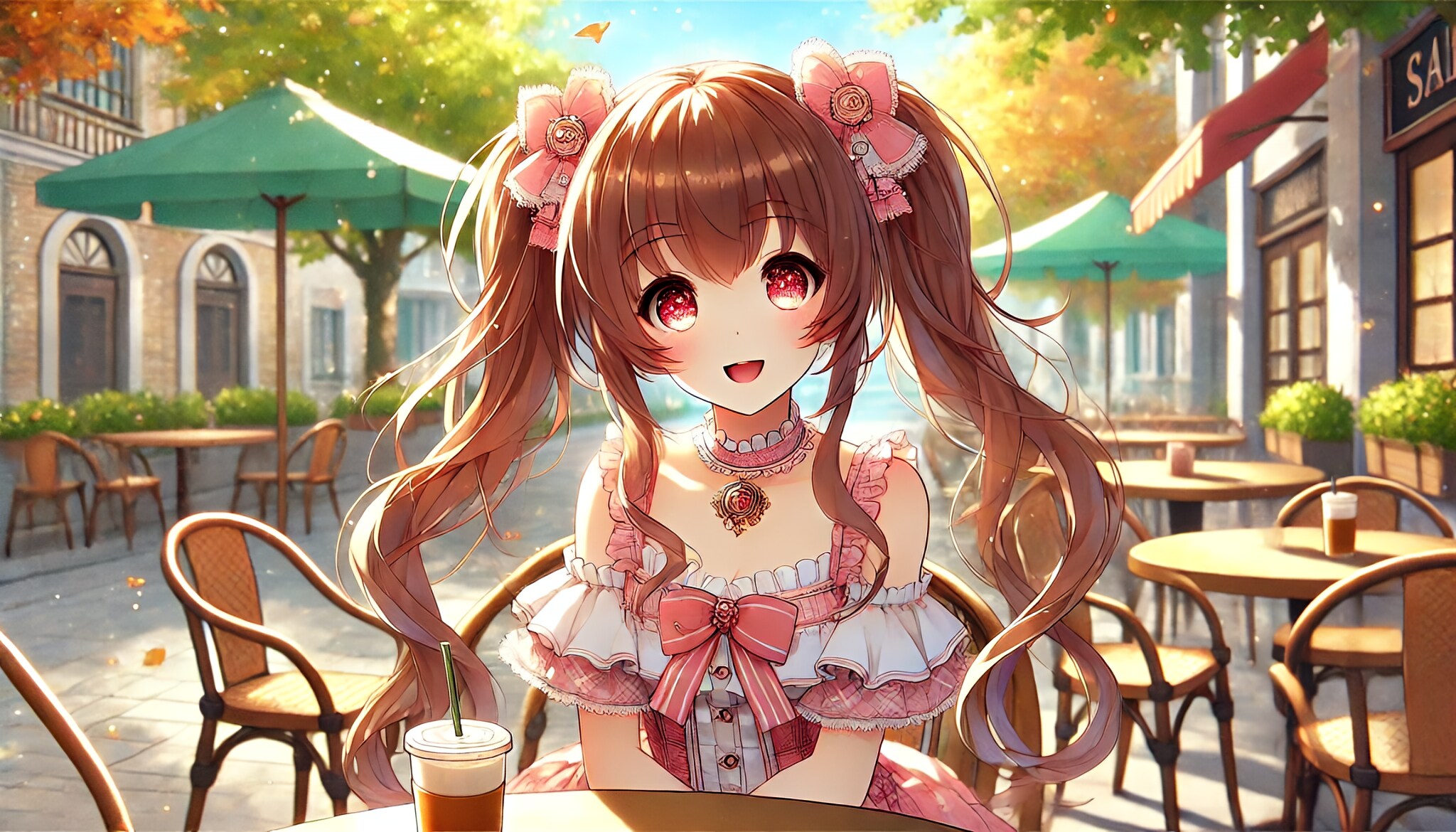 ChatGPTくんに店員じゃなくてお客としてカフェテラスで寛ぐさとみんを描いてと頼んだ