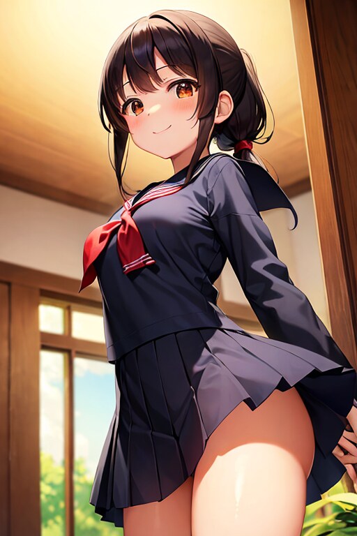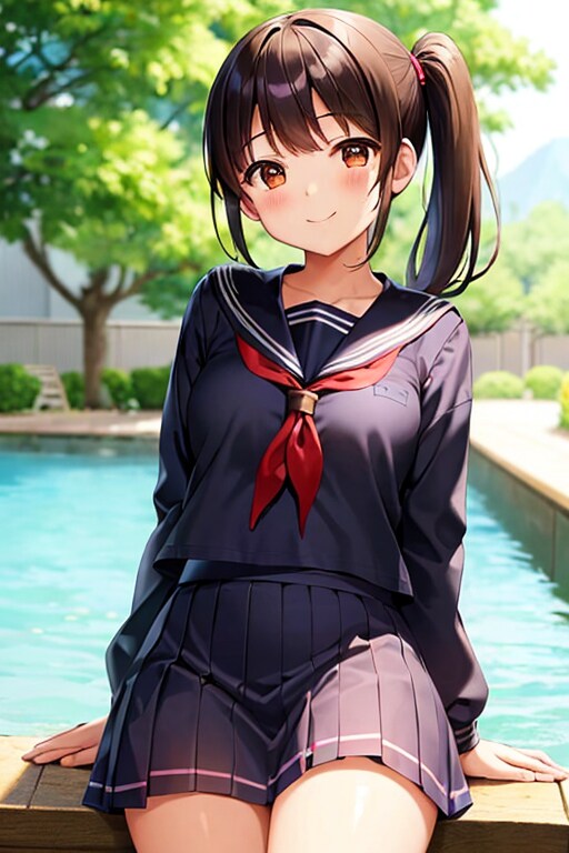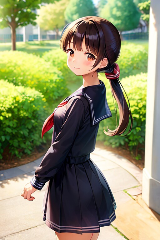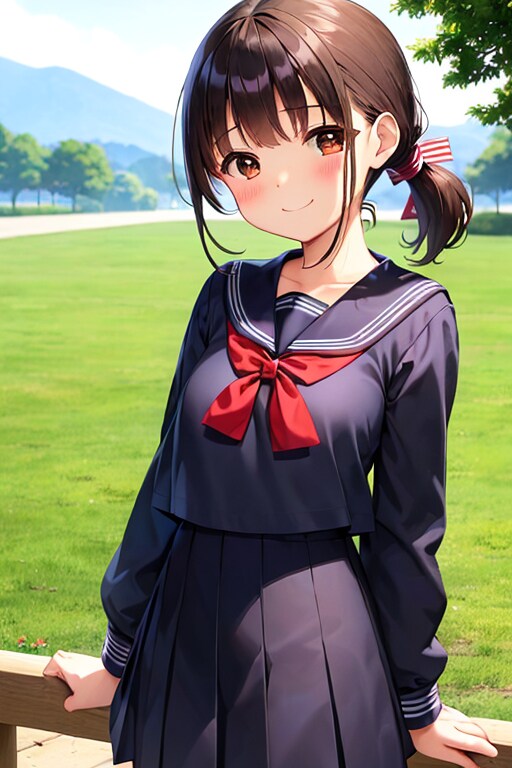 女の子はいつもの黒髪ポニーの茶瞳っ娘(お目々奇麗Ver)