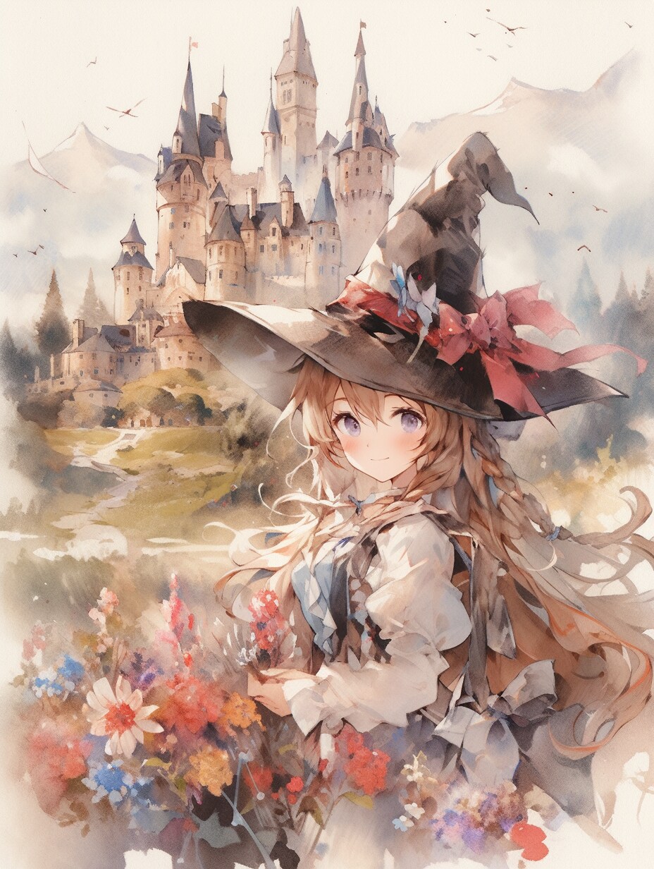 魔女っ子と中世のお城です。にじジャーニーで作ってます🌈