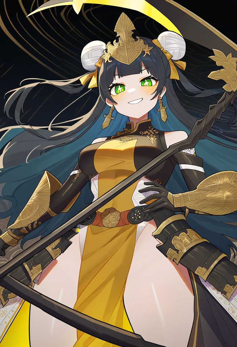「命を刈り取るなら分かりやすいものが良いわ。この大きさ、重さ、鋭さ。まさに私に相応しい力と言えようね。…さぁ、死にたいものから前に出て来なさいッ!」