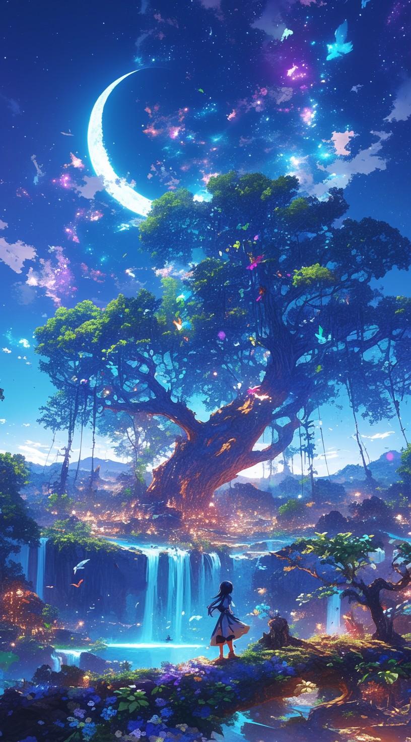 某ゲームの巨大な木のイメージイラストっぽい構図になりましたが、これはこれで気に入ってます
