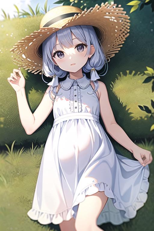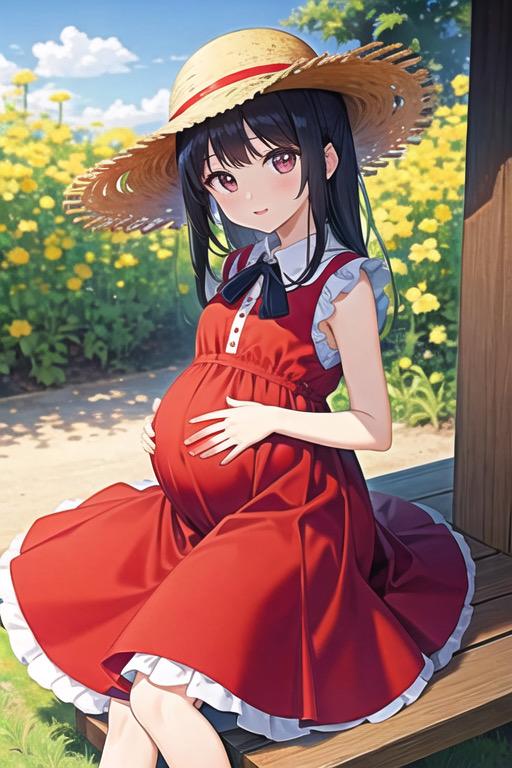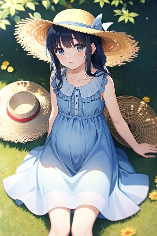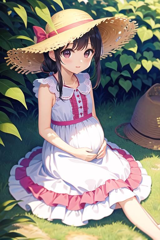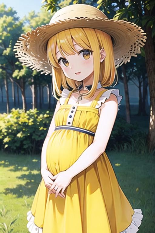 麦わら帽子に可愛いワンピース姿の身籠り少女