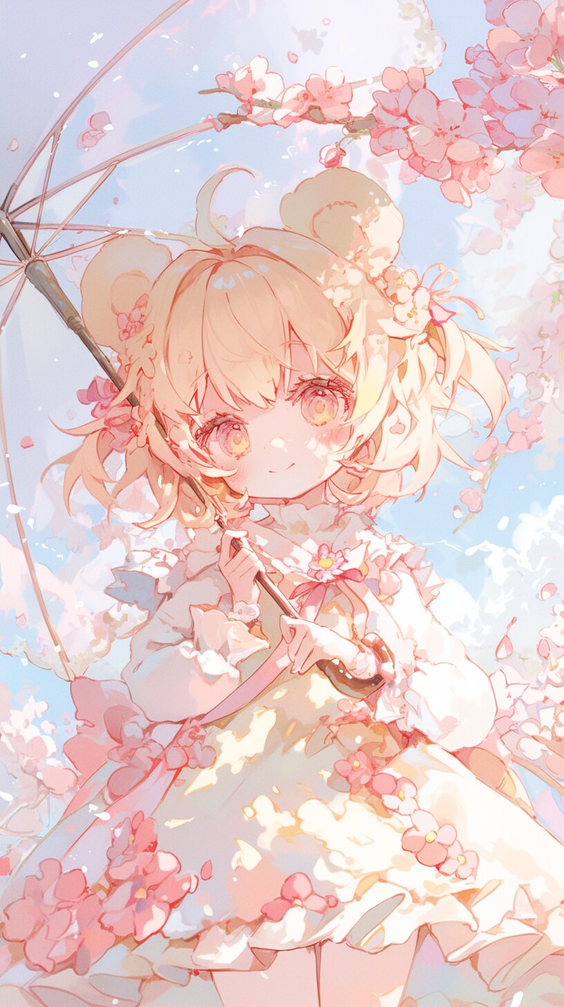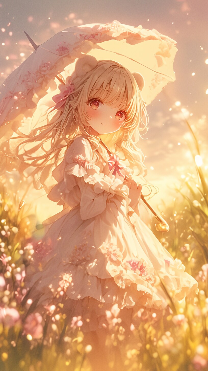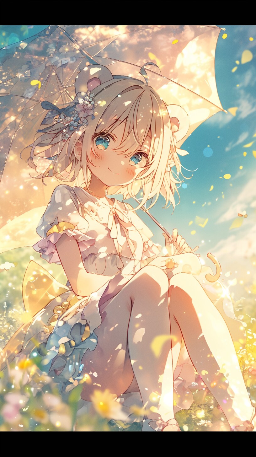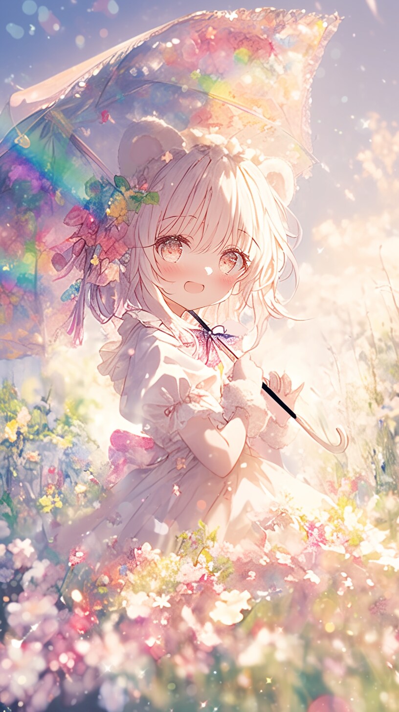 優しい日差しの中、虹色の日傘とくま娘が輝く瞬間✨