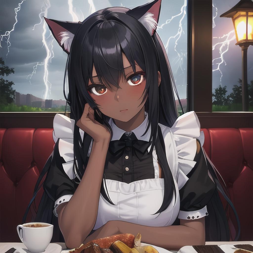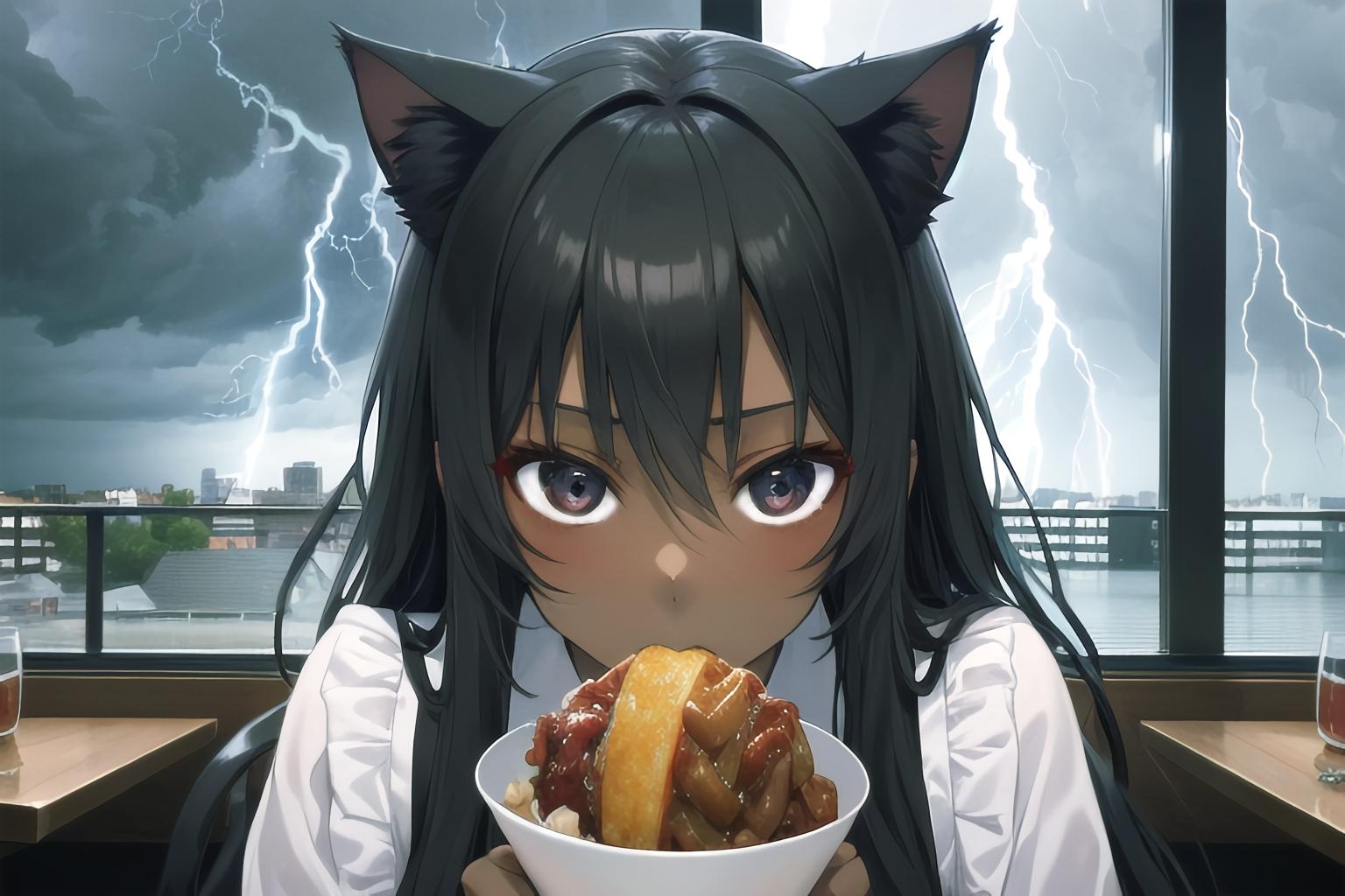黒猫娘とホラーな食堂でご飯を食べてます。