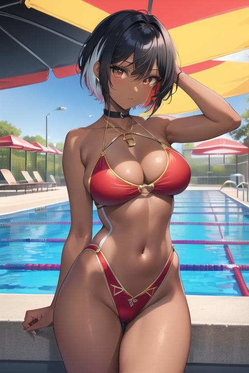 今回は、カラフルな感じのビキニ水着が出てくれましたね。