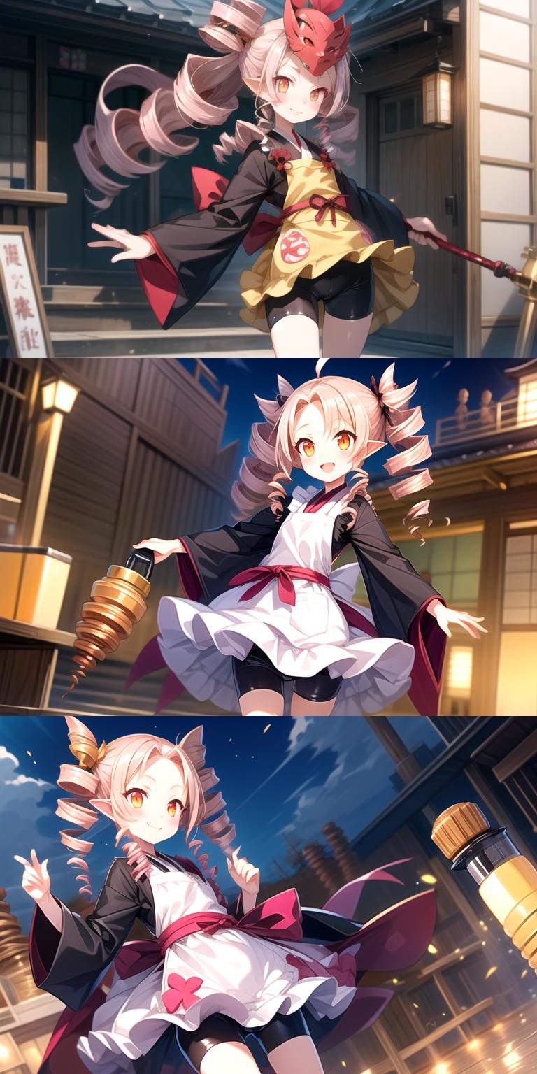 当初は呪文と既存LoRaで「ソレっぽいキャラが出来れば良いか」と思ってたんですが、生成を繰り返すうちに だんだん納得がいかなくなってきてしまい、最終的に「選別した生成物を画像アプリで加工しまくって、ソレをベースにi2i」とかの やたら手間とコストのかかる方法を使わないと気が済まなくなりました…。