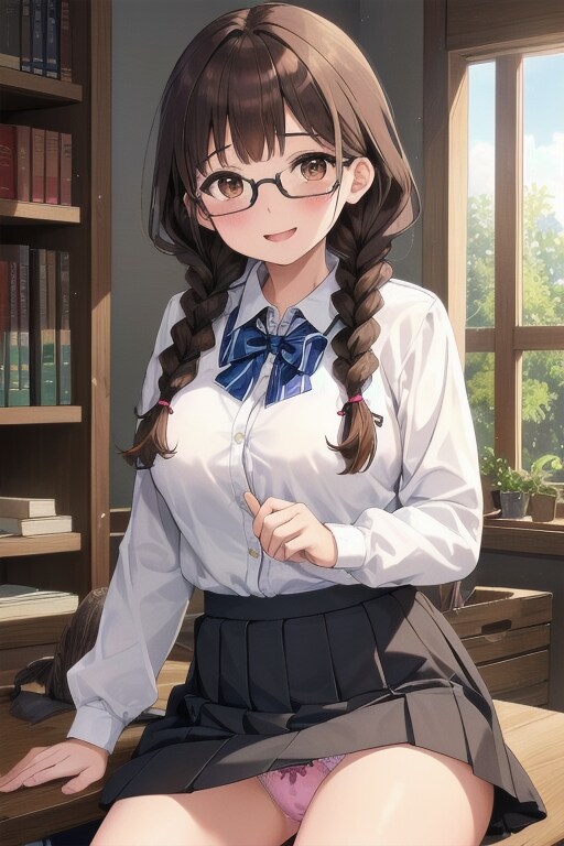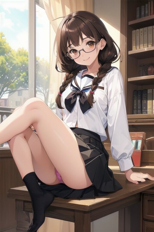 あるテーマの画像を作ろうしてたのですがどうもうまく行かなくて棚上げした作品のうち、地味なれど知的で折り目正しいイメージの眼鏡三つ編みっ娘らしからぬ画像を集めて投稿してみました。だらしない女の子は好きではありません(まあ男性相手でもそうですが)が眼鏡三つ編みっ娘は別です(苦笑)。