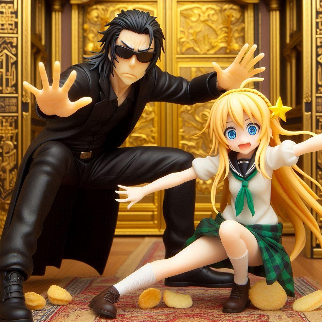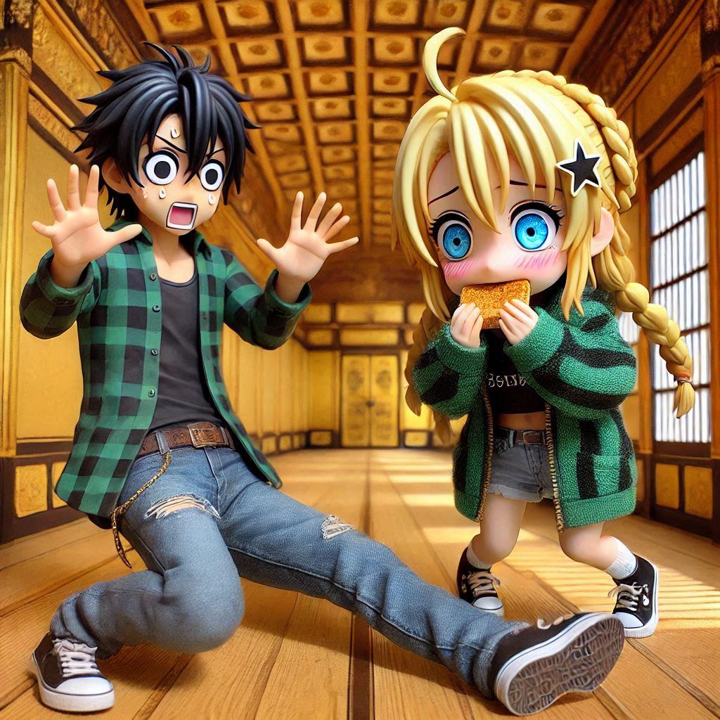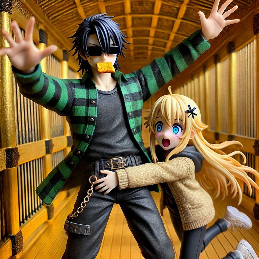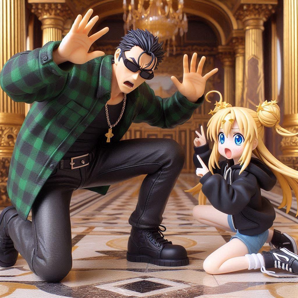 どこかでプロンプトを使って人物の表情を「><」にしていた人がいた