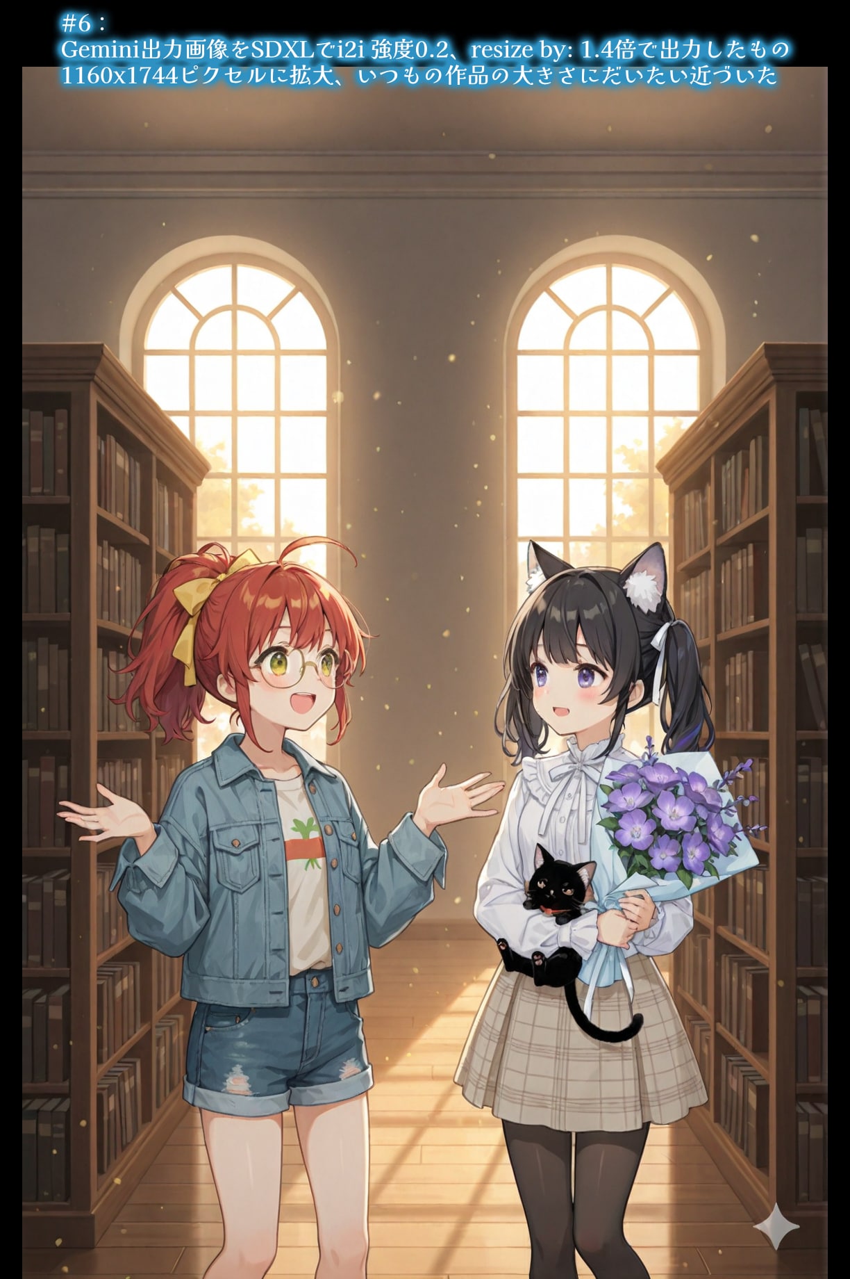 かように解析と指定を加え、図書館の中という妄想設定で同時召喚を行ったのが1枚目になります。