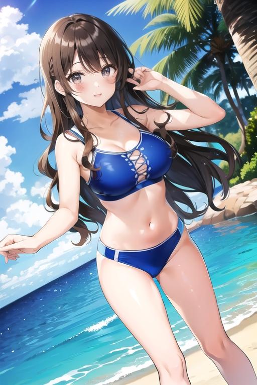 青い水着のお姉さん