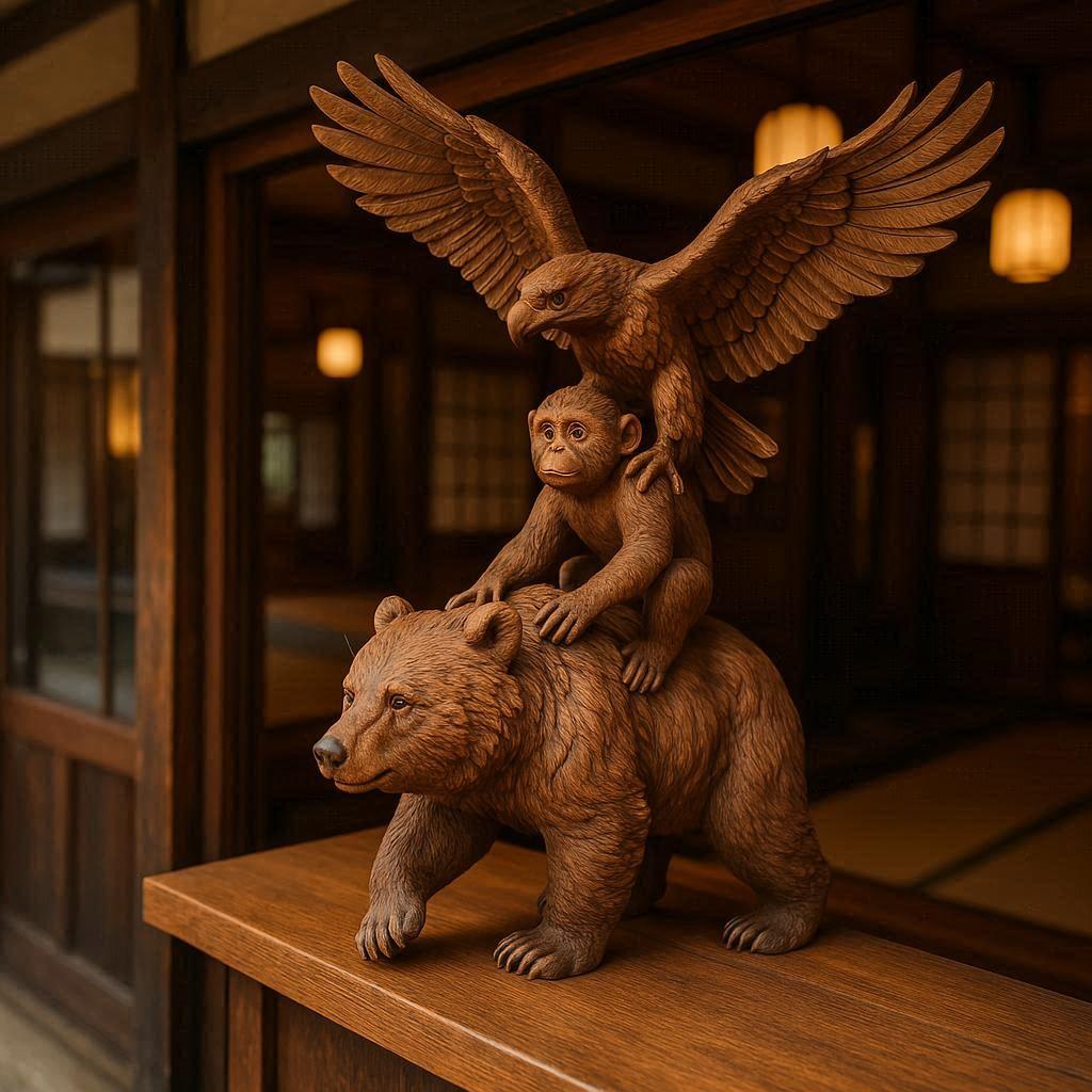(昔見かけた木彫りの像をAIに画像再現して貰いましたぞ)