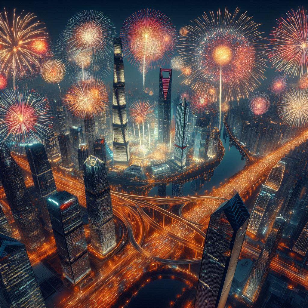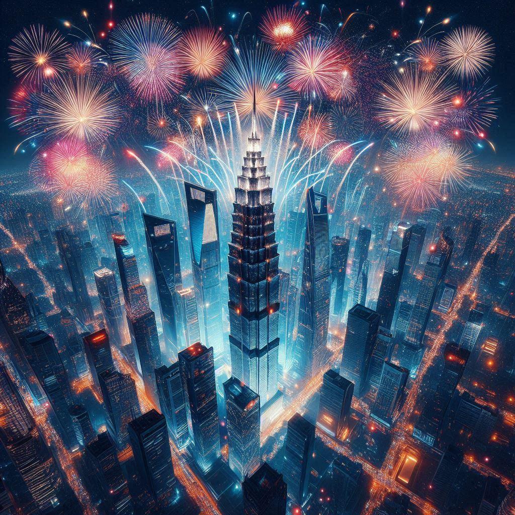 タイトル通り、高層ビル群の中で打ち上げられる大量の花火です。