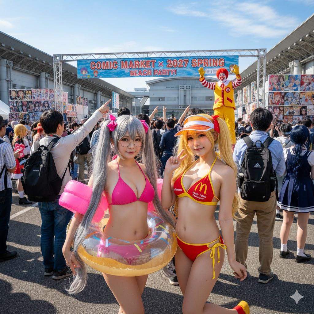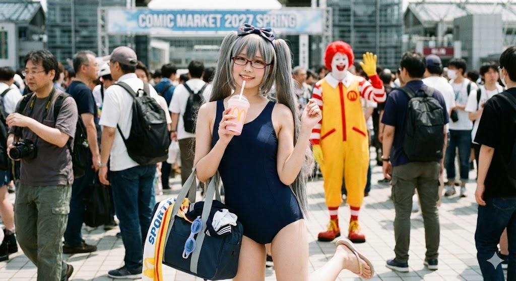 * **背景の雰囲気:** 85点 (コミケの賑わい、イベント感)