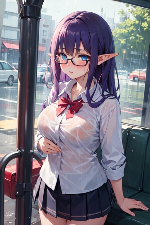 少し恨めしそうな顔で空を見上げていた。雨で服が濡れてしまったせいかうっすらと下着が見えている。