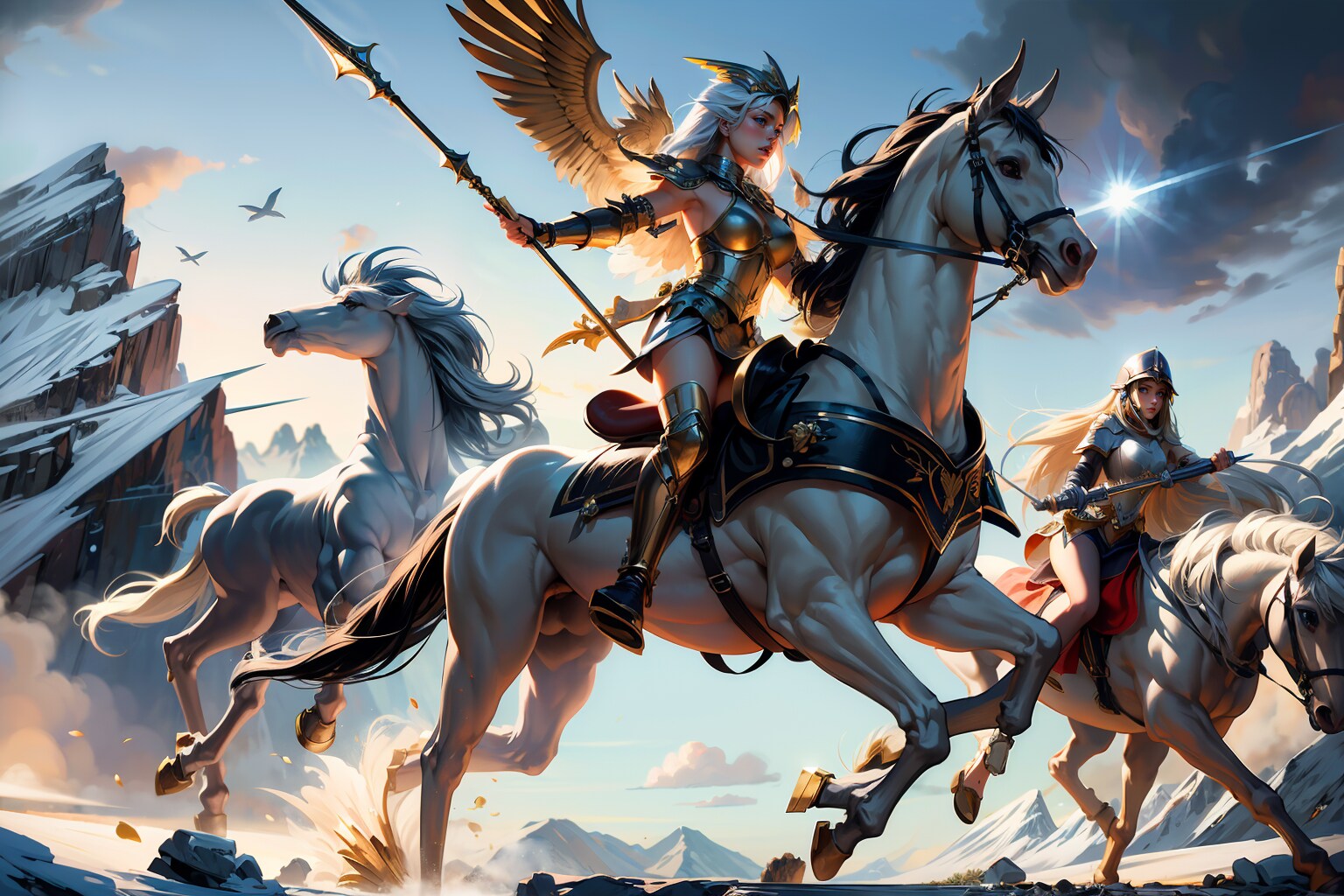 AI先生は乗馬が得意のようで、騎馬人物像の破綻が予想以上に少ない。失礼ながら、意外でした。ただポーズのバリエーションは豊富ではなく、生成枚数の割には使えるものが少なめでした。