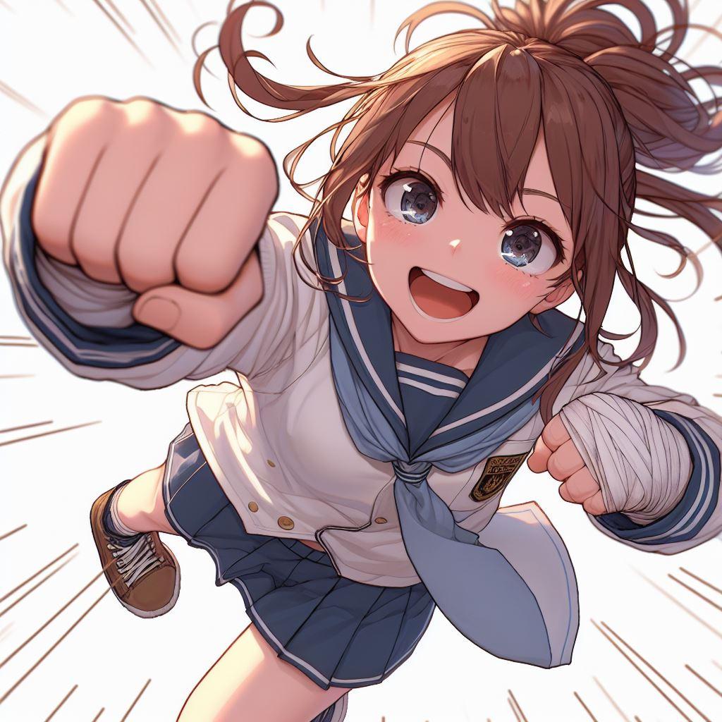 女の子のパンチ(Copilot)