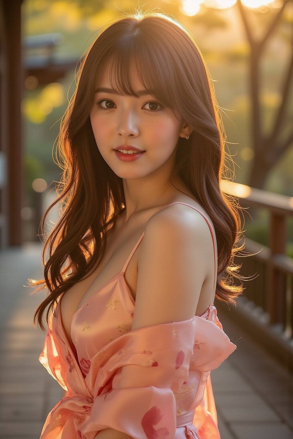 京都の夕陽と和服美人
