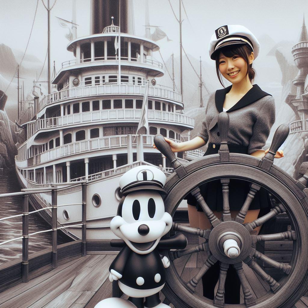 結局ミッキーとも共演していません。GPTだと「まだ国際的には著作権が曖昧」と言われて作ってくれず。Bingは平気で作ってくれるけど、初代デザインと指示してもバンバン現代風の出してきます😅