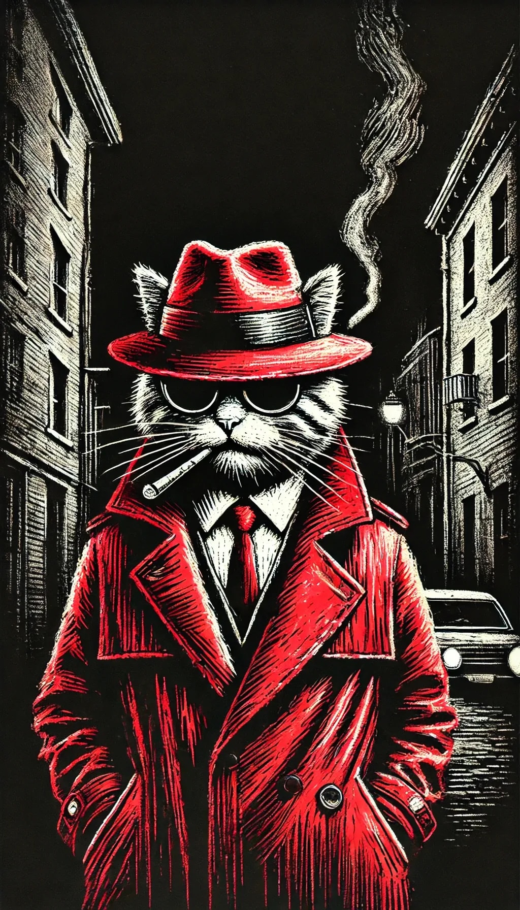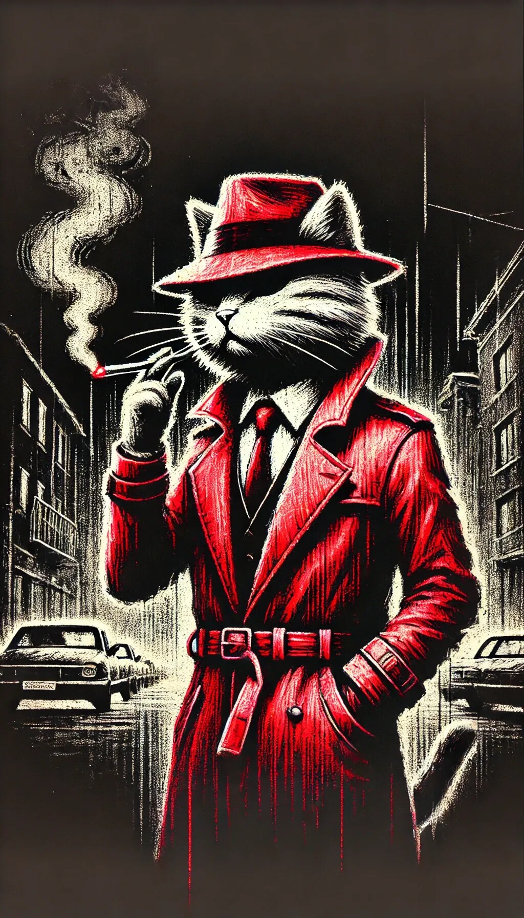 煙草の煙に消える街の影、探偵猫が今日も真実を追う。闇夜に浮かぶその姿、彼が唯一信じるのは己の鋭い勘だけ。