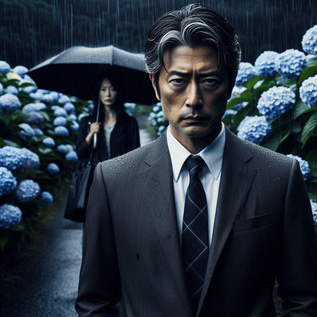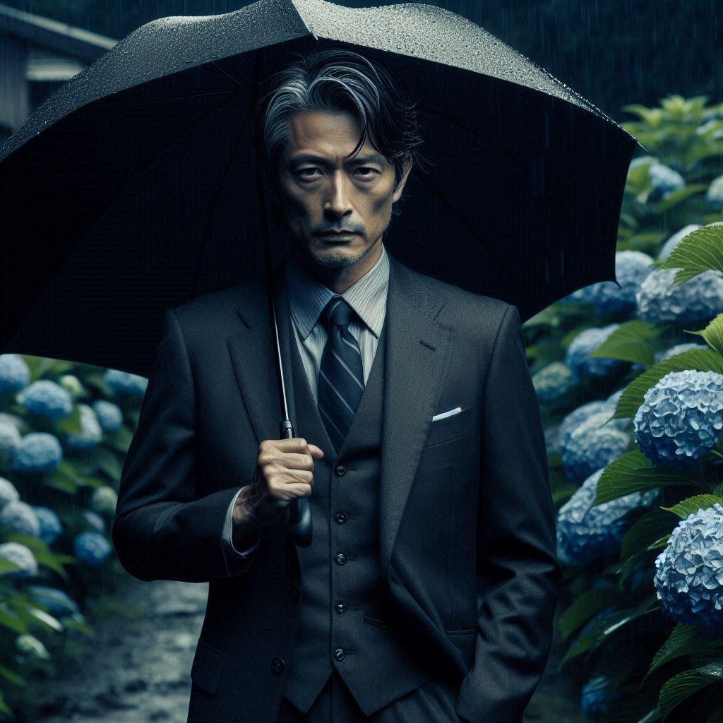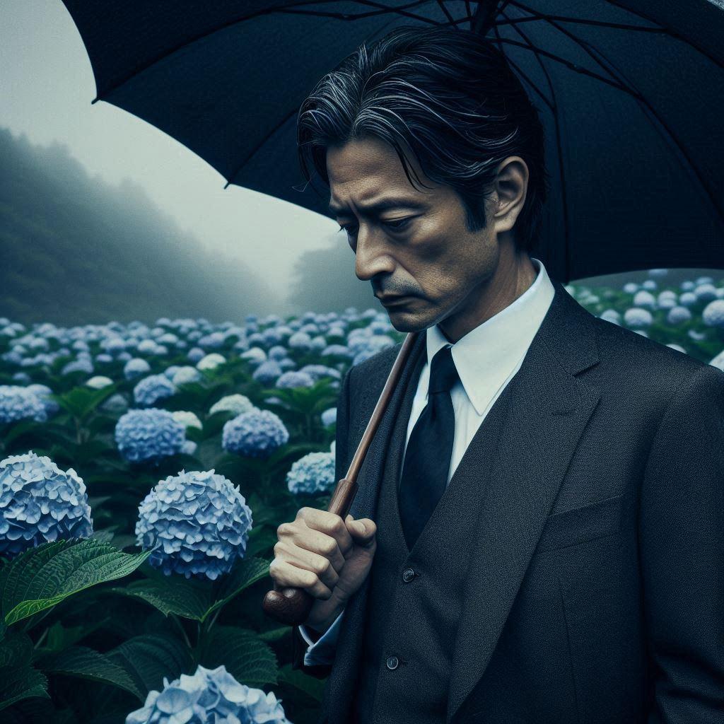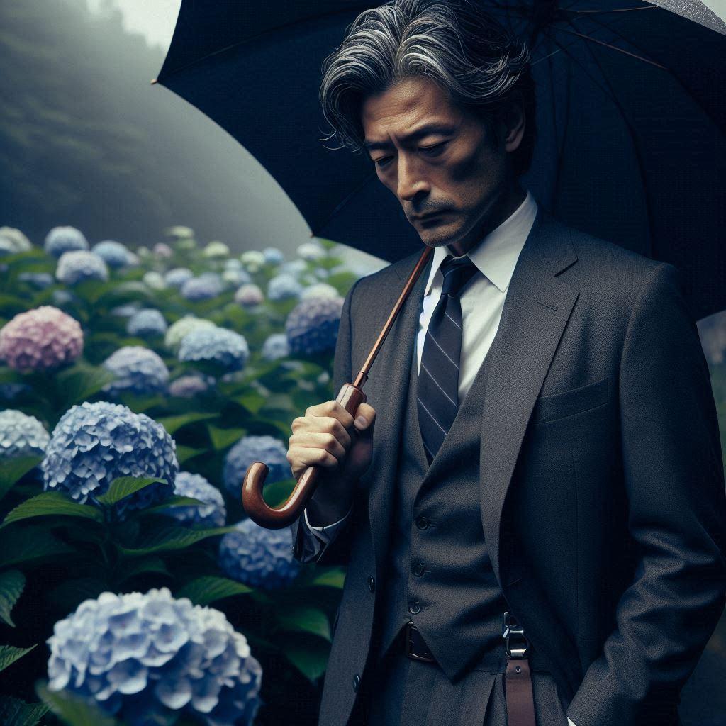 情報源の人物と会うため、アジサイ園で待つ執事ちゃんの叔父上