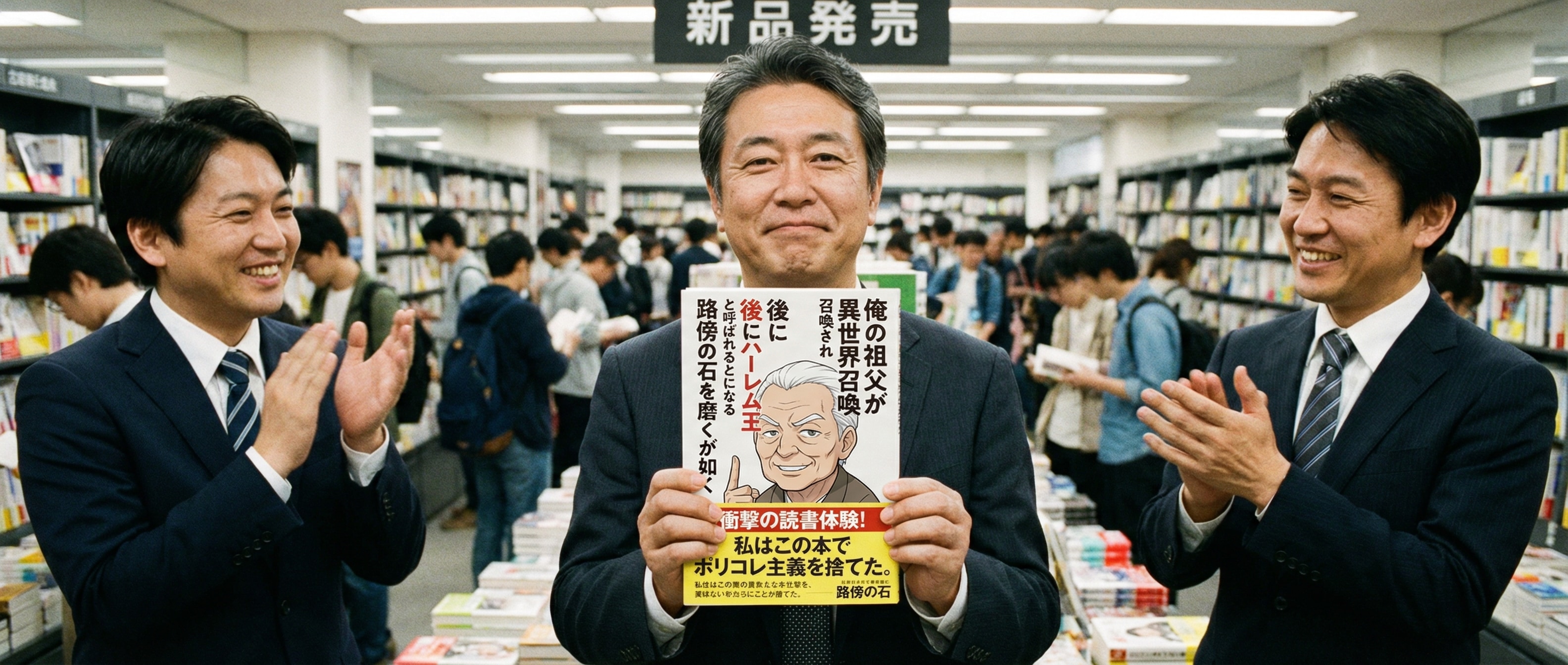 本のタイトル。「俺の祖父が異世界召喚され後にハーレム王と呼ばれることになる件について」