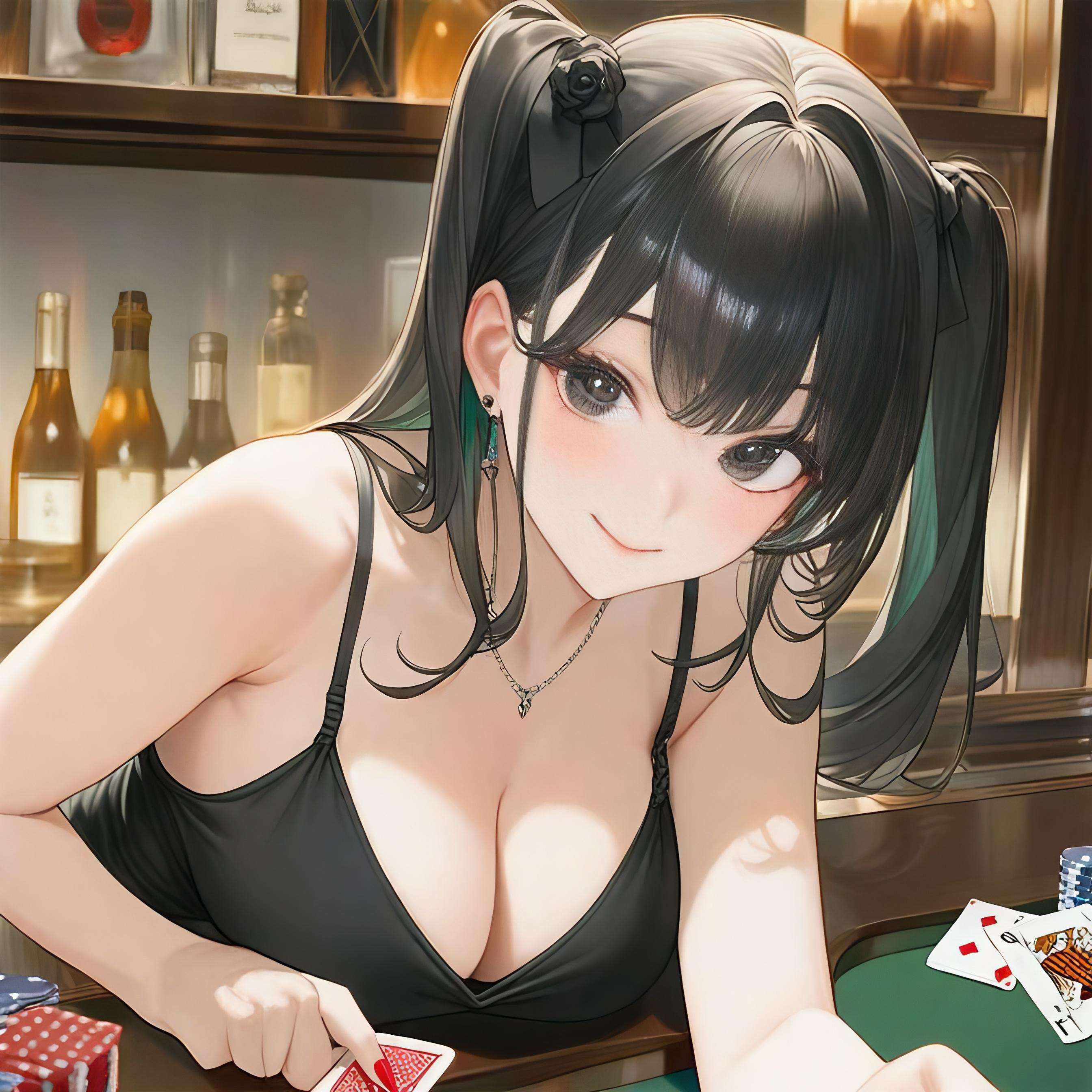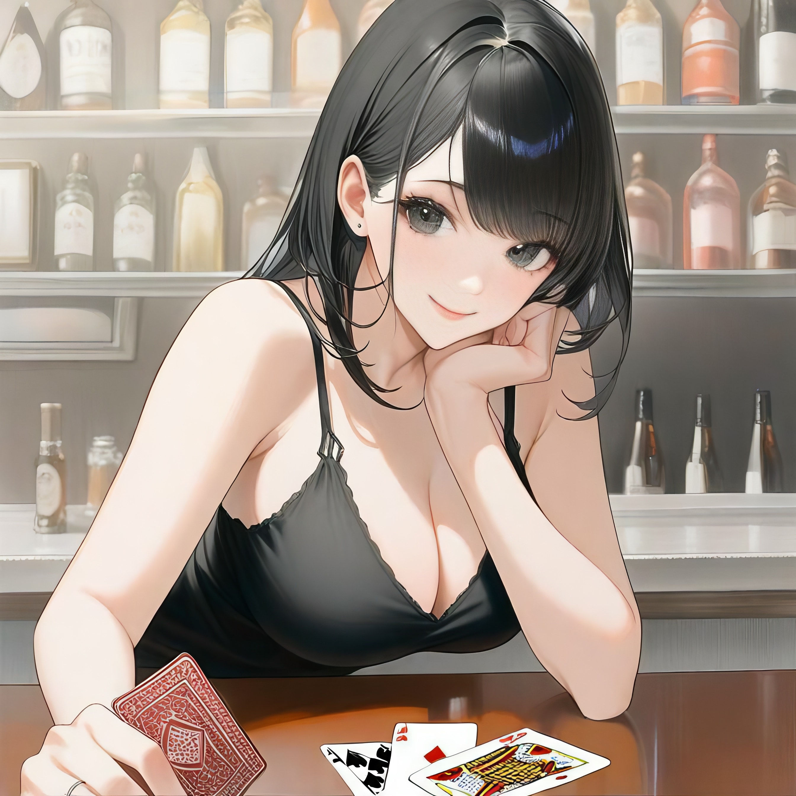マジックバーにいる女性マジシャン。彼女の胸元に見とれてる間に彼女のマジックワールドに引き込まれます。