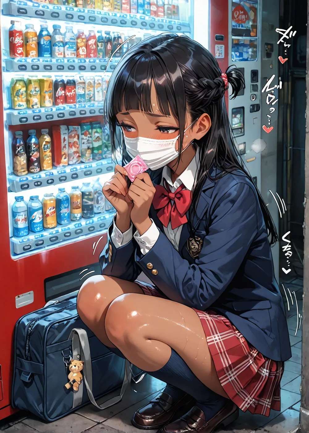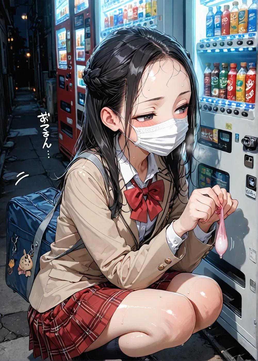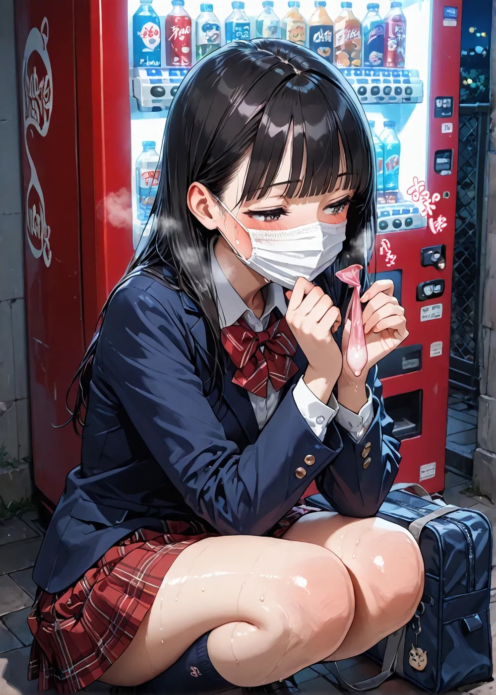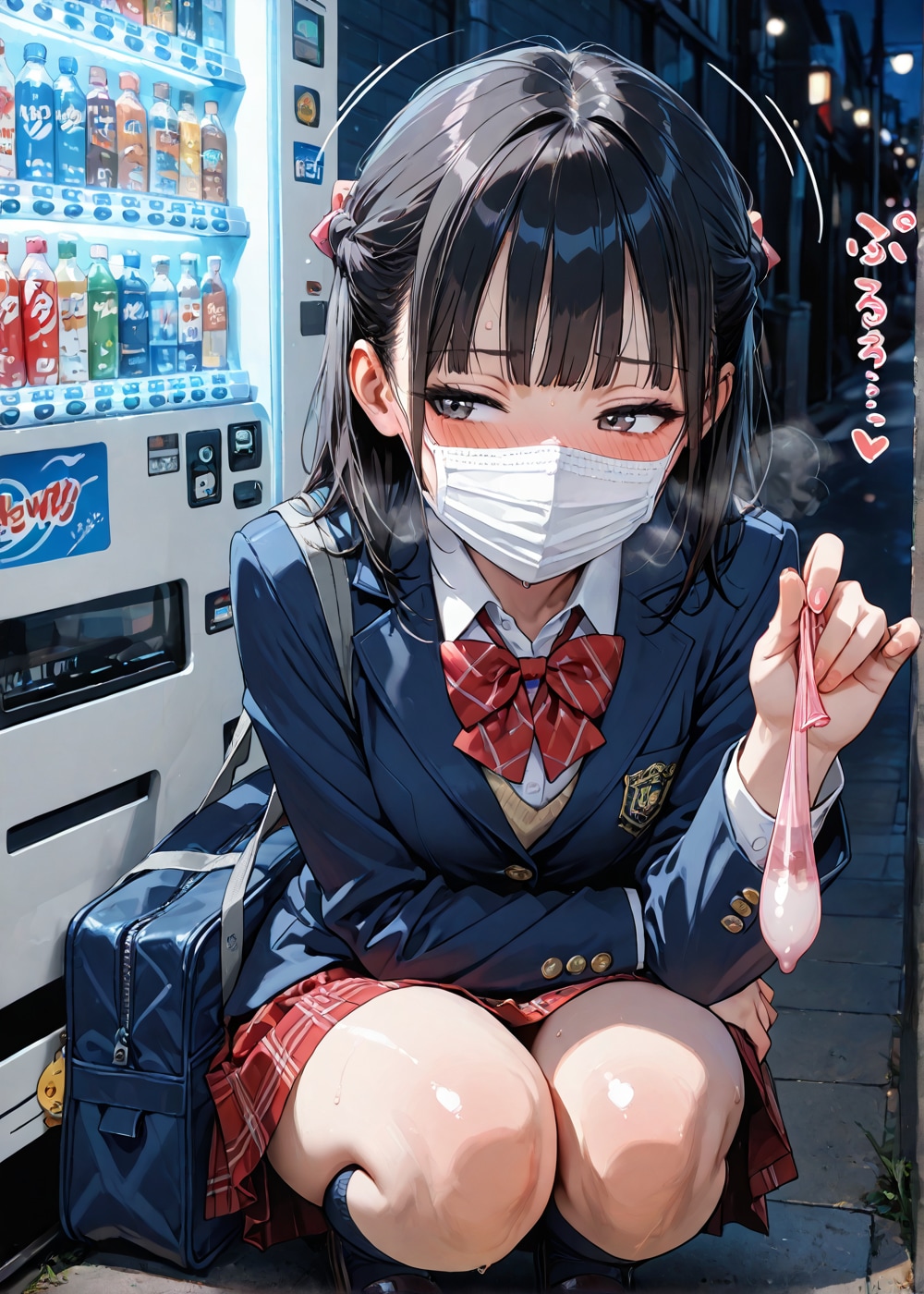 おまけ💕ゴムを持たされて順番待ちをしているマスクJK❤️