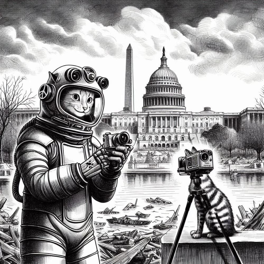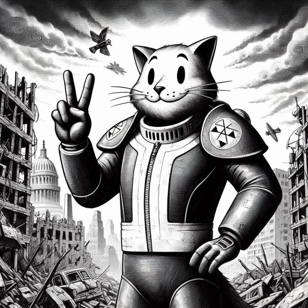 世紀末ピースサイン自撮りボディスーツコスプレ人妻&白黒猫?
