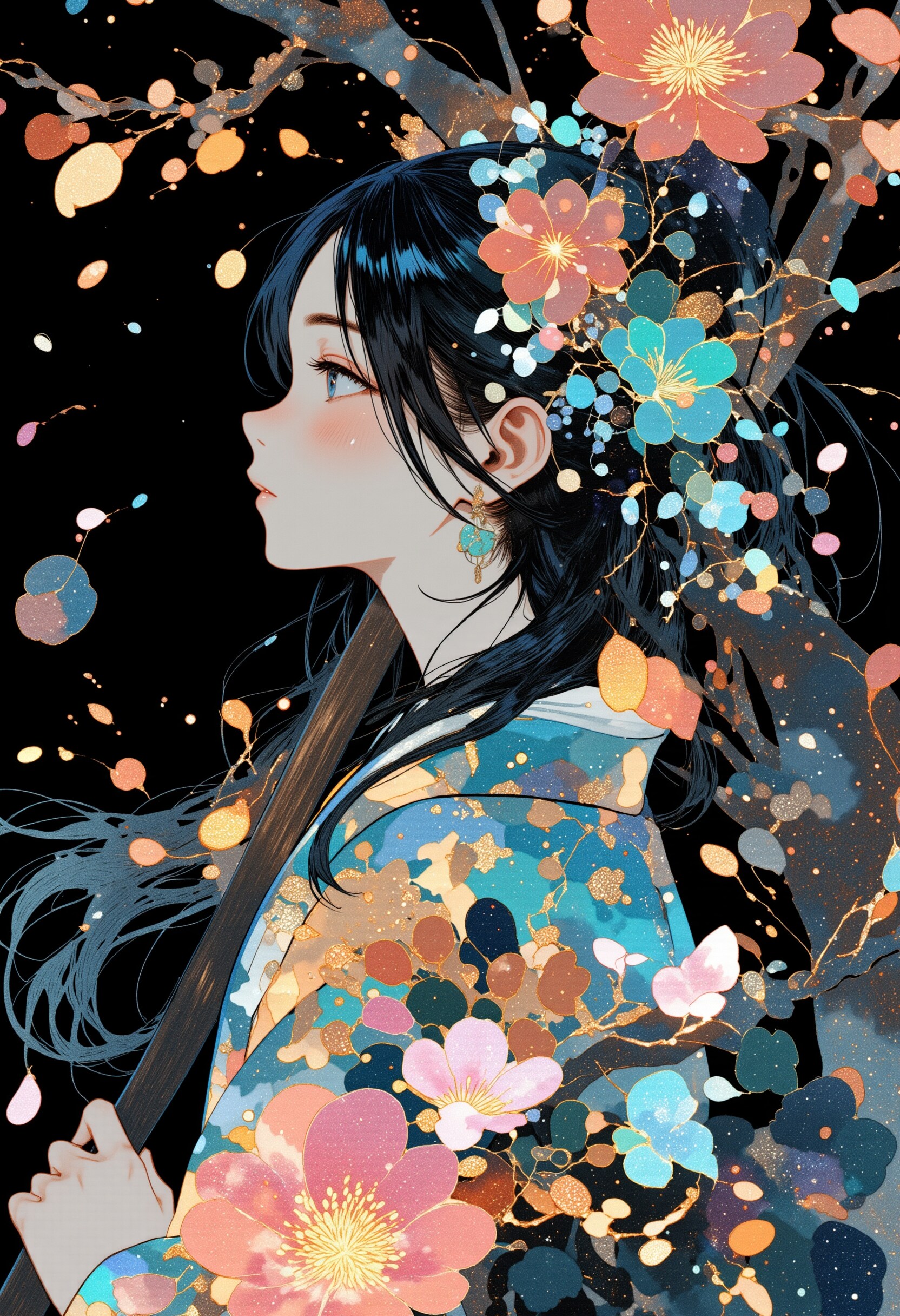 Steps: 30, Sampler: Euler, Schedule type: Simple, CFG scale: 1, Distilled CFG Scale: 3.5, Seed: 1271511800, Size: 832x1216, Model hash: 2abace2516, Model: lyhAnimeFlux_v4Niji, Denoising strength: 0.4, ADetailer model: face_yolov8n.pt, ADetailer confidence: 0.7, ADetailer dilate erode: 4, ADetailer mask blur: 4, ADetailer denoising strength: 0.4, ADetailer inpaint only masked: True, ADetailer inpaint padding: 32, ADetailer version: 24.11.1, Hires upscale: 2, Hires steps: 15, Hires upscaler: 4x-UltraSharp, Lora hashes: "digital-abyss: 9c28c6b84bf5, ral-crystalz: 04954de5fcad, WATERCOLOR-lora.TA_trained: 1926c27a39ac, ck-holographic-glitter-000015: 90aa4411c77a", Version: f2.0.1v1.10.1-previous-528-ge55cde9b, Module 1: ae, Module 2: clip_l, Module 3: t5xxl_fp16