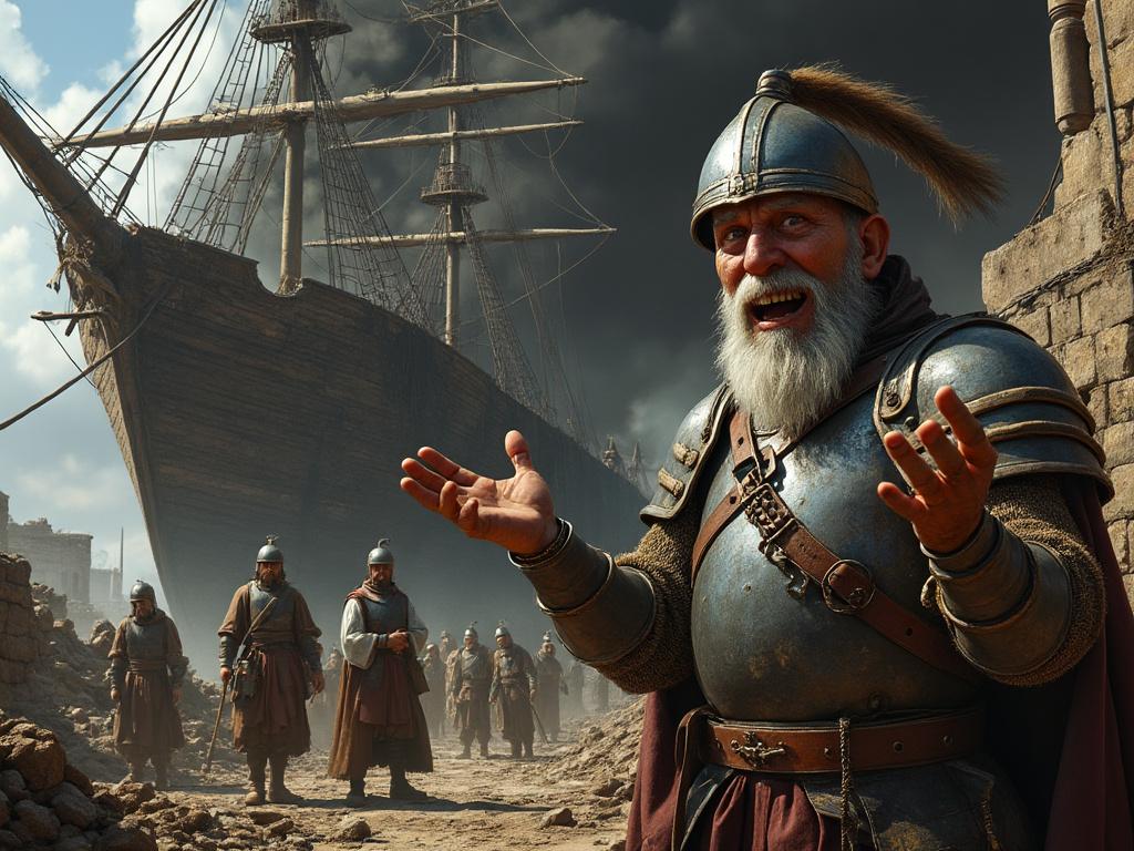 カラカラの造船所。イスパニア王の援助で、追加の資材と職人が到着するが船は半壊に近い。