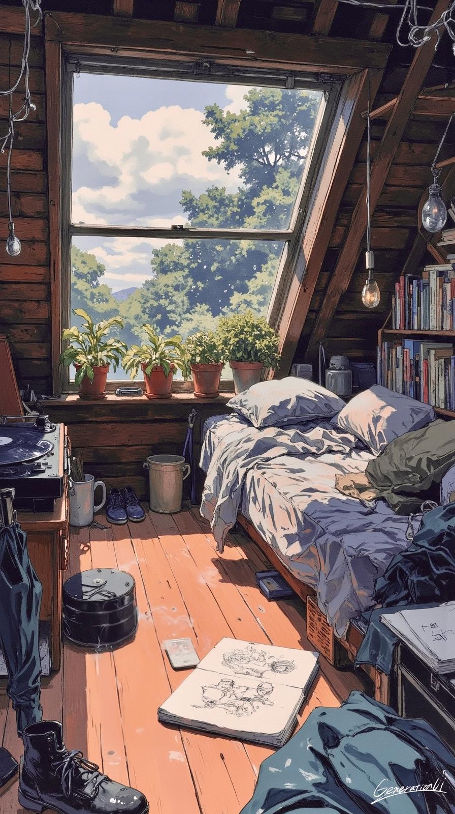 屋根裏で過ごすひととき/スマホ壁紙アーカイブ