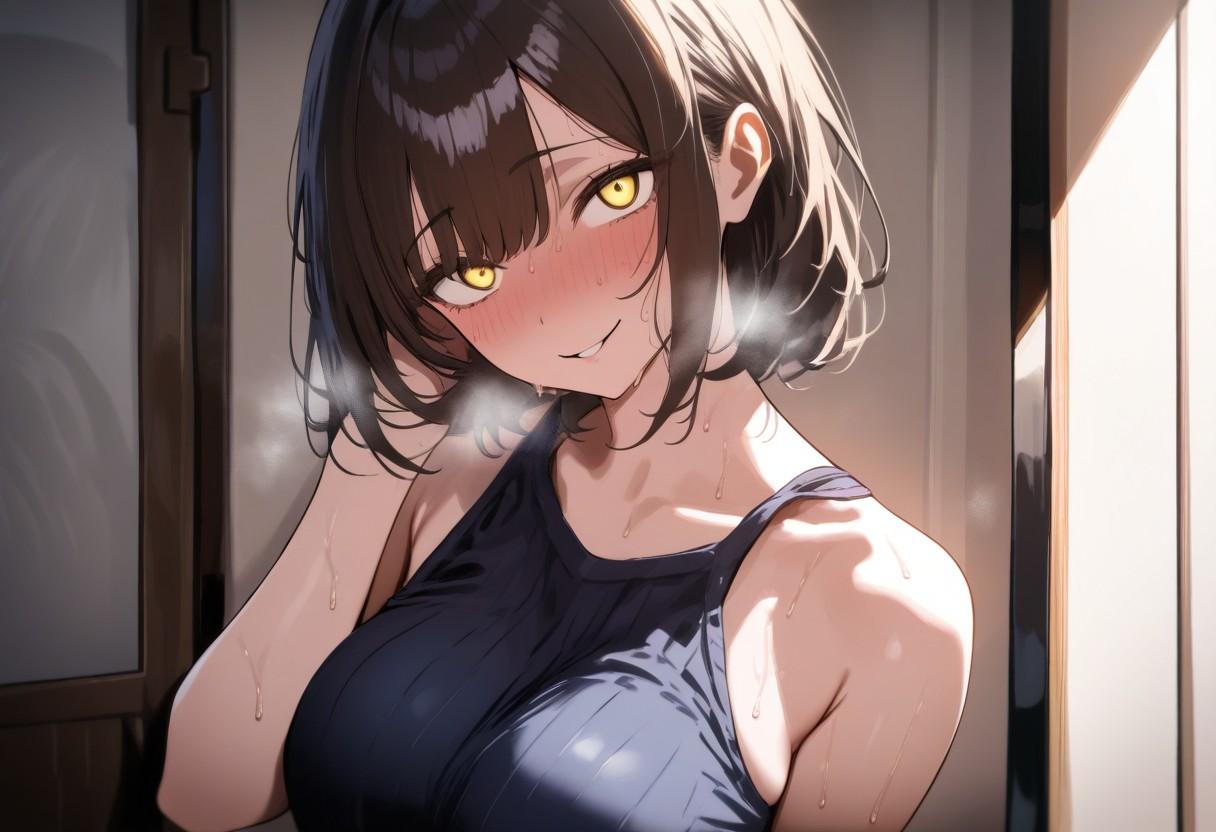jacket partially removed, heart in eye, burnt clothes, holding fishing rod, kanji, doujin cover, pentagram, tape gag, adjusting headwear, red socks, friends, cloud print, coke-bottle glasses, oral invitation, competition school swimsuit, barbell piercing, gradient legwear, prisoner, blood on breasts, wind chime, carrying over shoulder, tape measure, flaming weapon