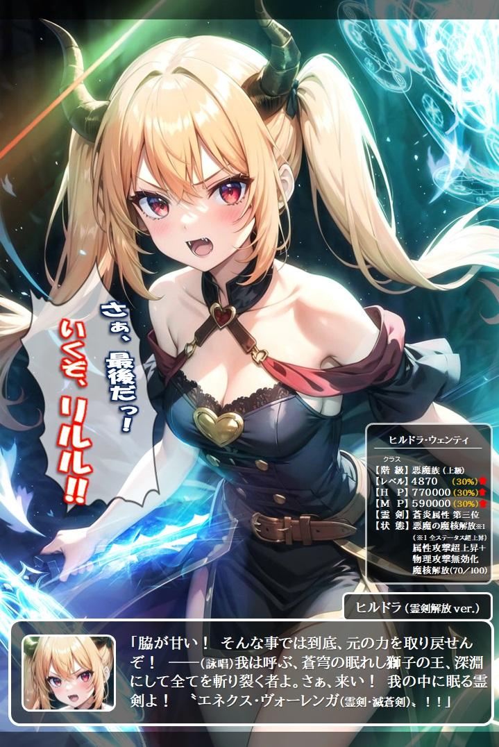 今回はヒルドラちゃんの魔力解放もとい、霊剣解放ver.でふ(≧▽≦)