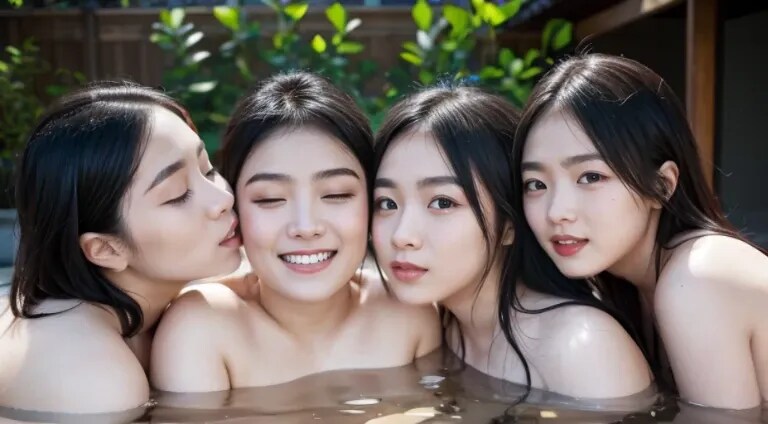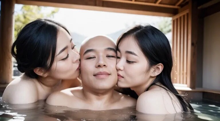 混浴温泉で10代j⚪︎にサンドイッチされちゃうおっさんたち