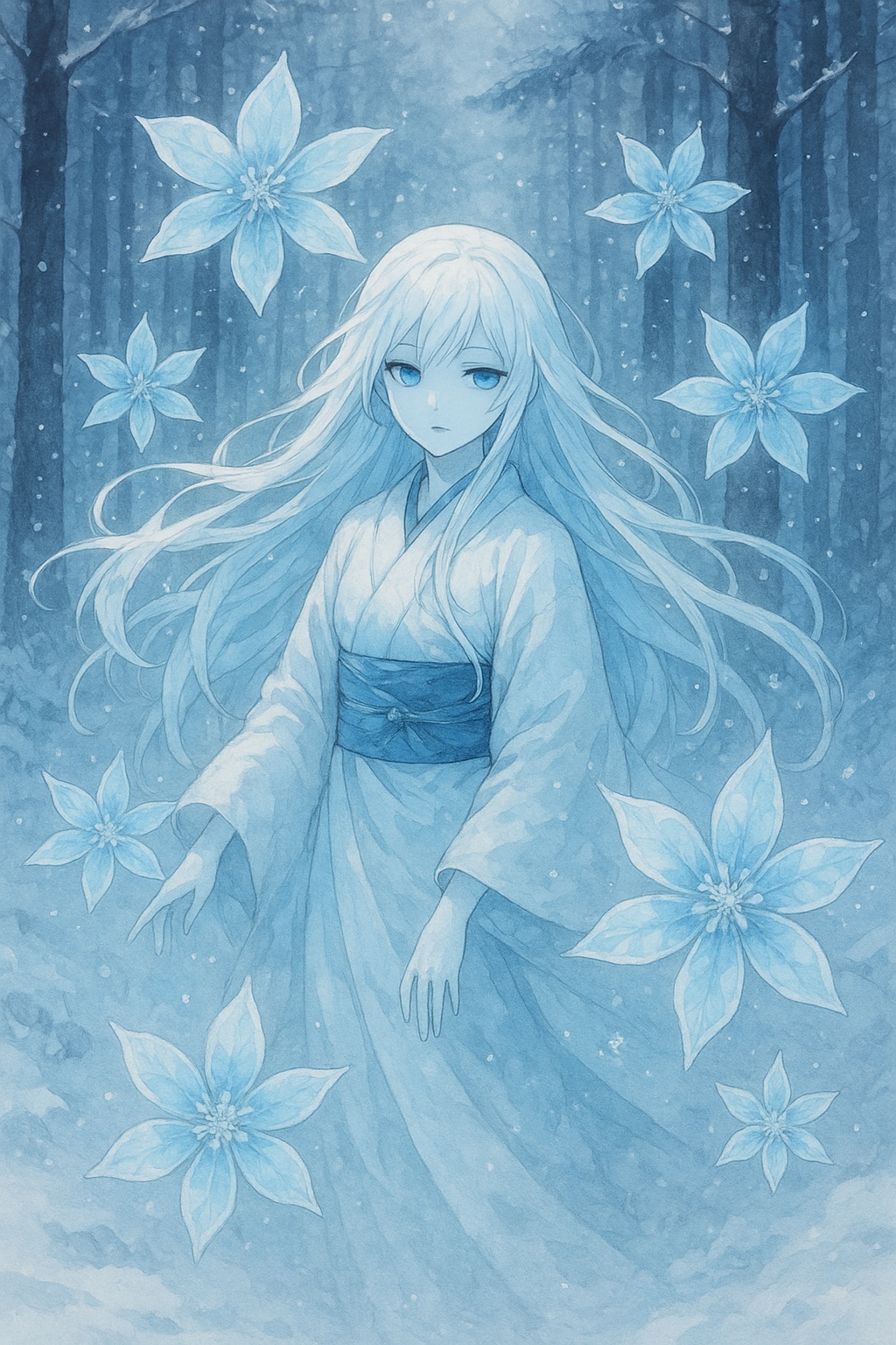 お花がもう少し氷っぽくなってほしい気もしましたけれど、TAKE1からこの絵でしたので、完成でいいかな、と。