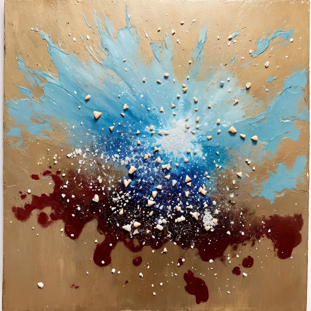 宇宙空間に料理の基本概念さしすせそ(砂糖、塩、酢、醤油、味噌)を加え抽象画にしてみました(笑)