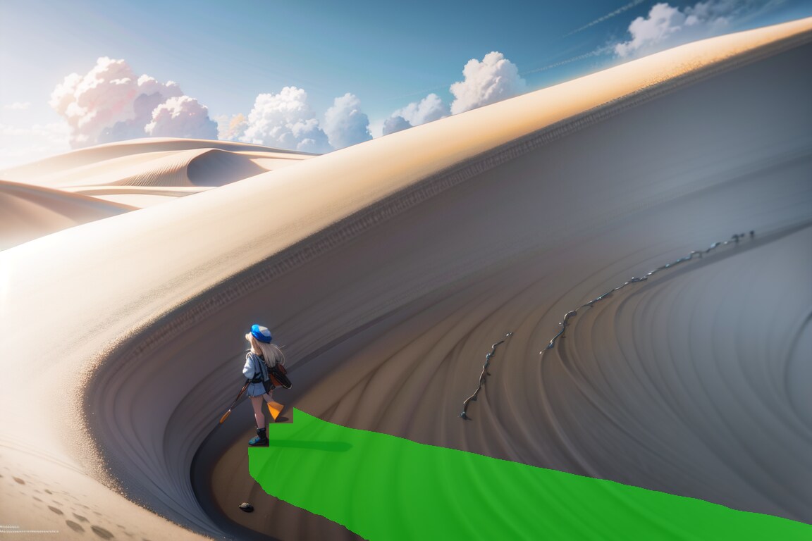 あまり、"歩いた場所から緑に覆われていく"という表現がうまくいってないですけれど、そういう絵のつもりで雑加工とi2iで生成しています。