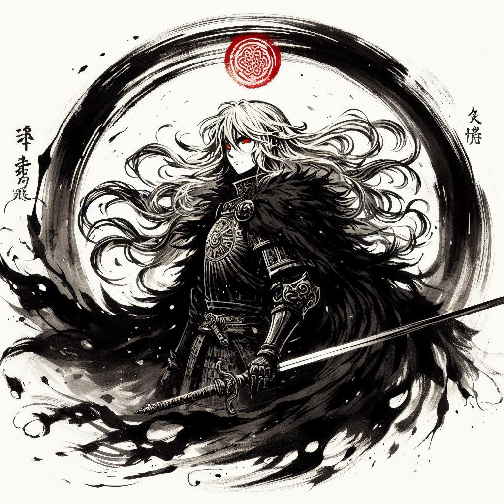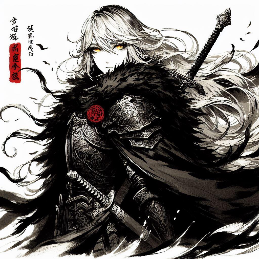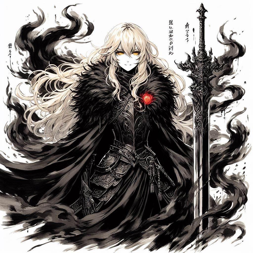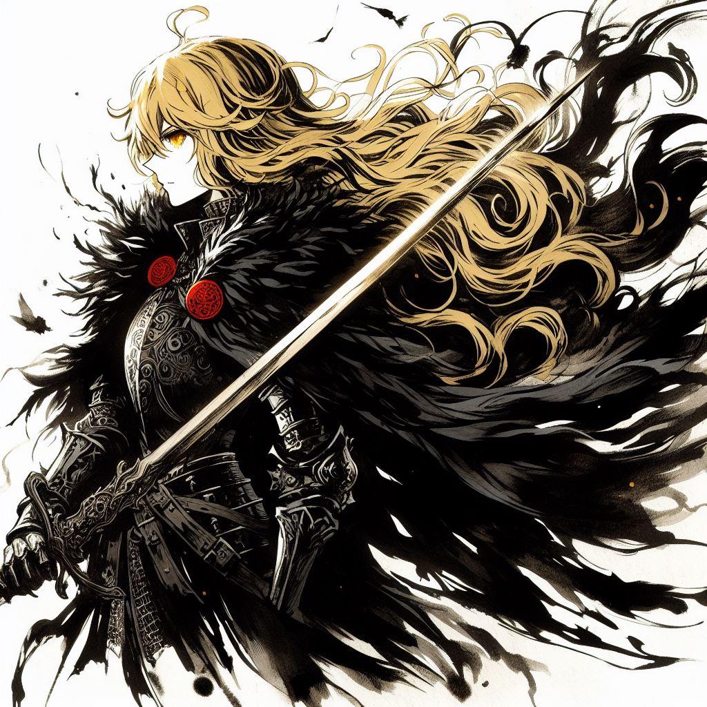 墨絵風ブロンドの女騎士さん