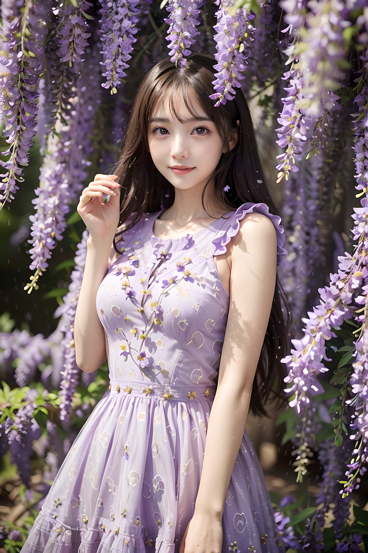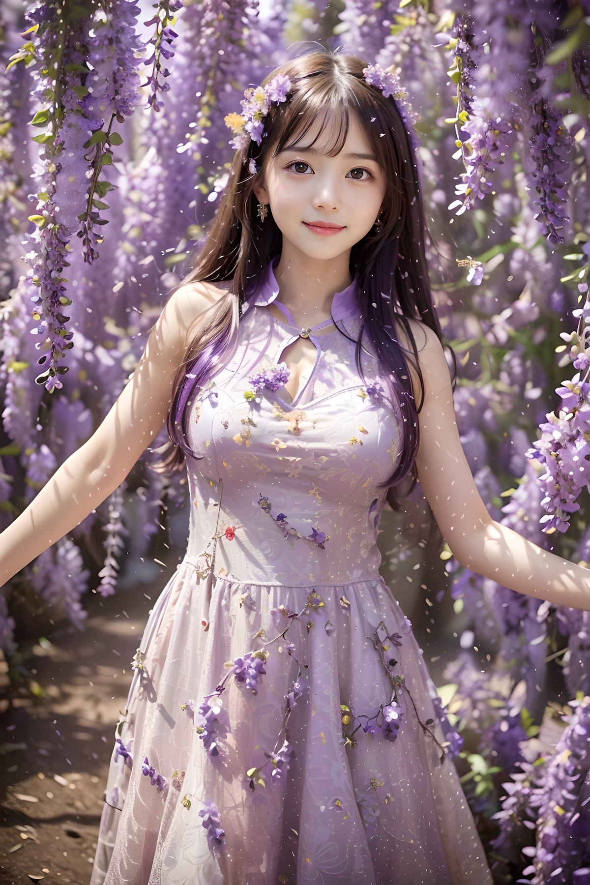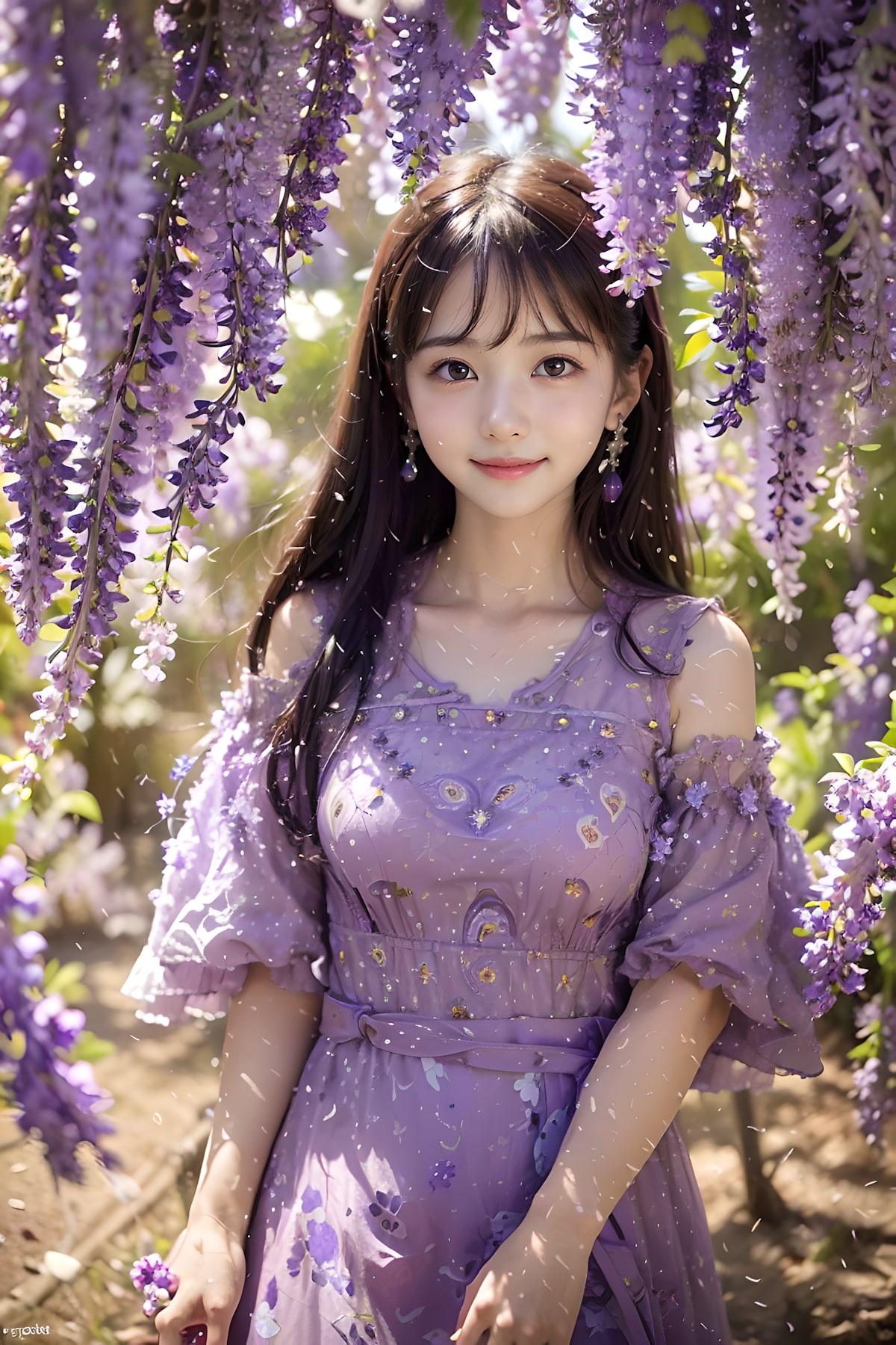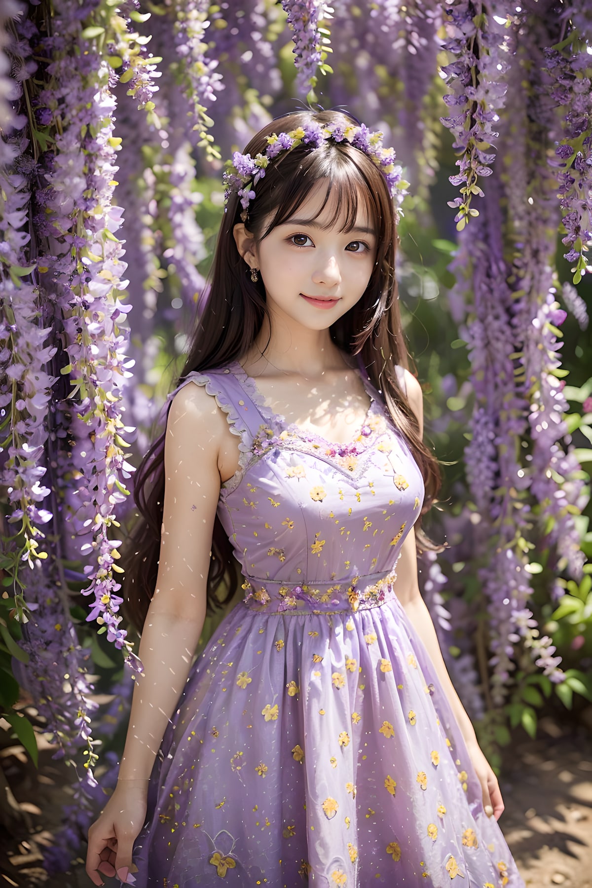 美しい藤棚に見とれて、思わず藤色の服を着て来てドヤ顔気味に写真を撮ってもらうJK香織ちゃんです🥰