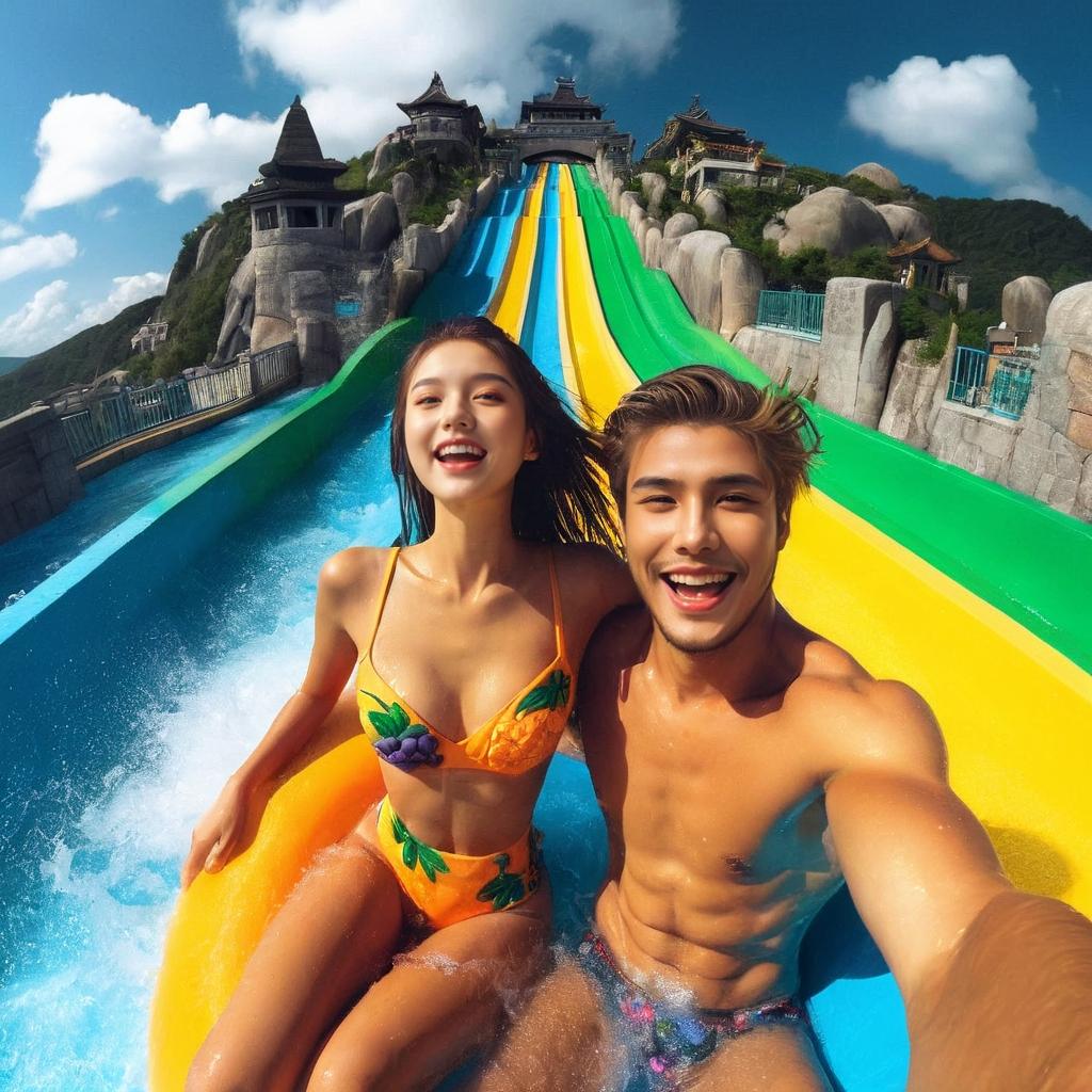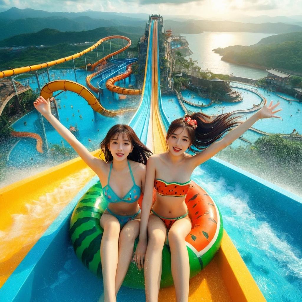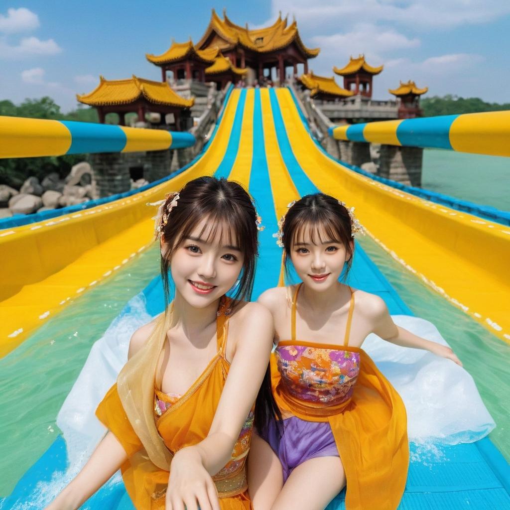 1枚目は、中国系お嬢様が休暇で訪れた別荘にあるプライベートウォータースライダー(PWS)です。お嬢様は、露出控えめです✨