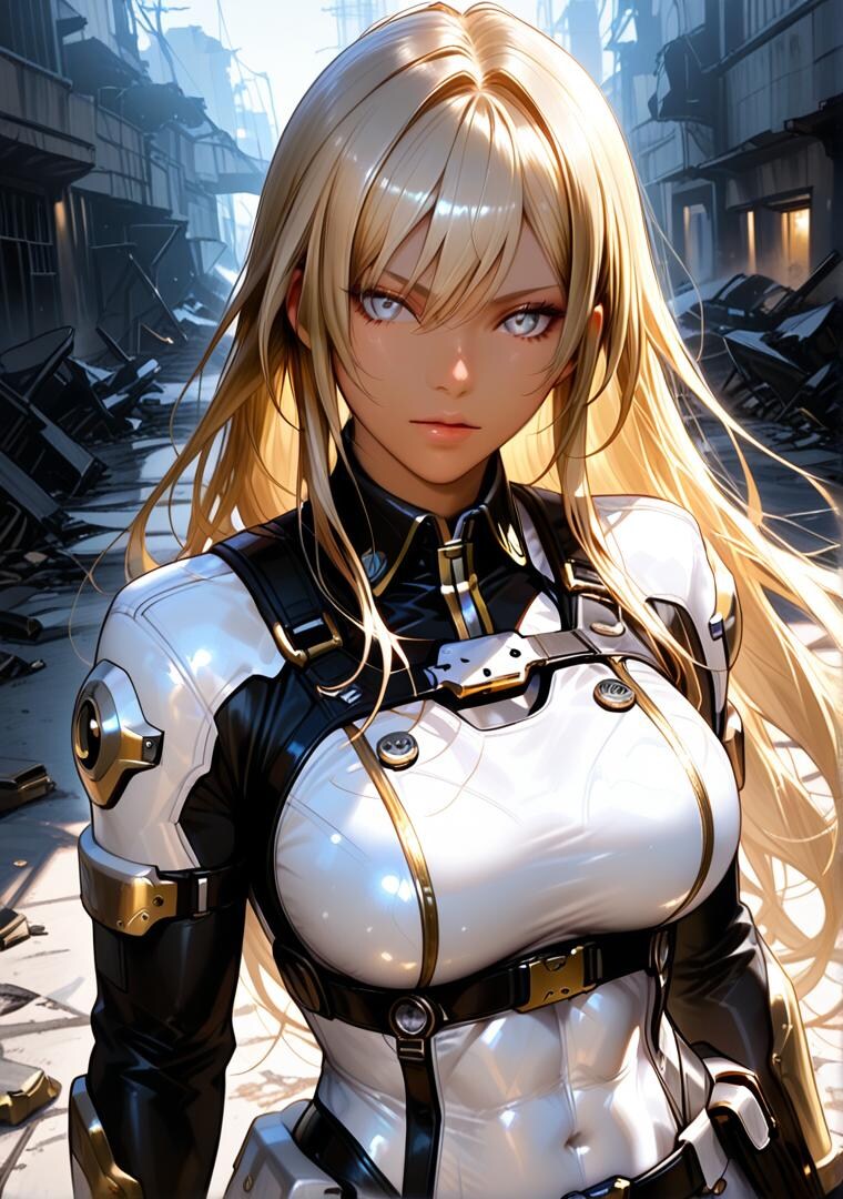 titanium-gray combat uniform with minimal plating and lightweight mesh zones # 軽量メッシュゾーンと最小限の装甲プレートを持つチタングレーのコンバットスーツ