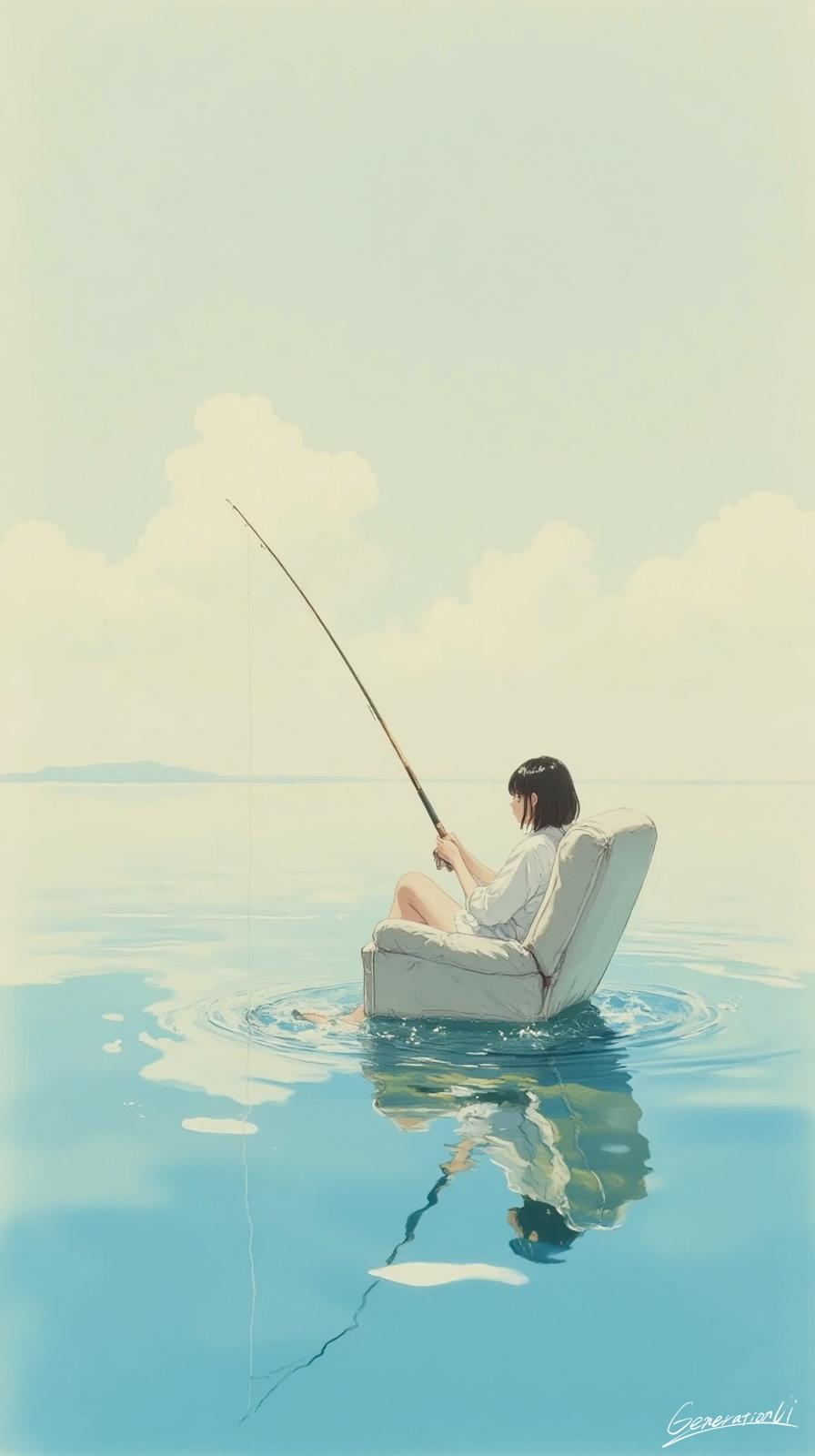 水上ソファで釣りをして/スマホ壁紙アーカイブ