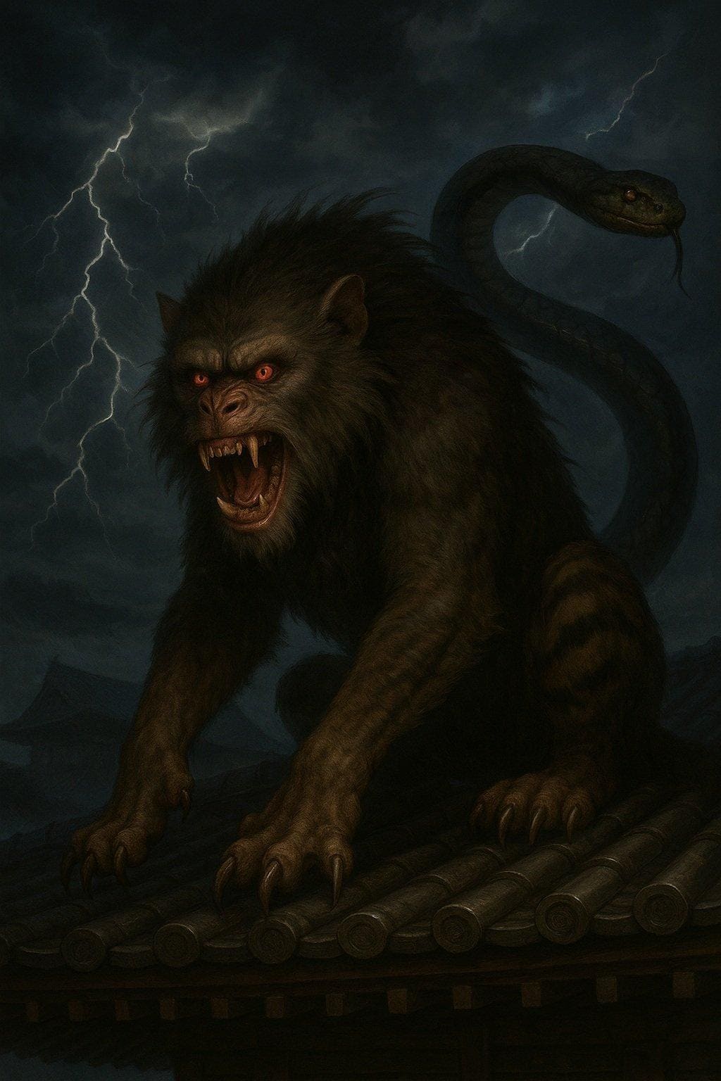ChatGPTは意外と簡単に出た。「鵺」を認識していた。はっきり見えないので妖怪らしくて良い。
