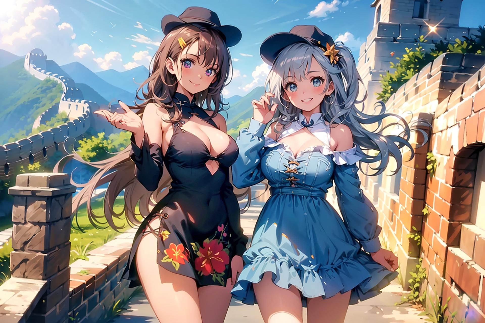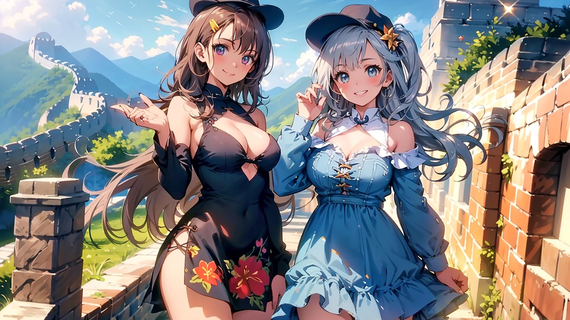 一枚目がちちぷい生成画像を横1920pixelに拡大後、加筆修整したもの、
